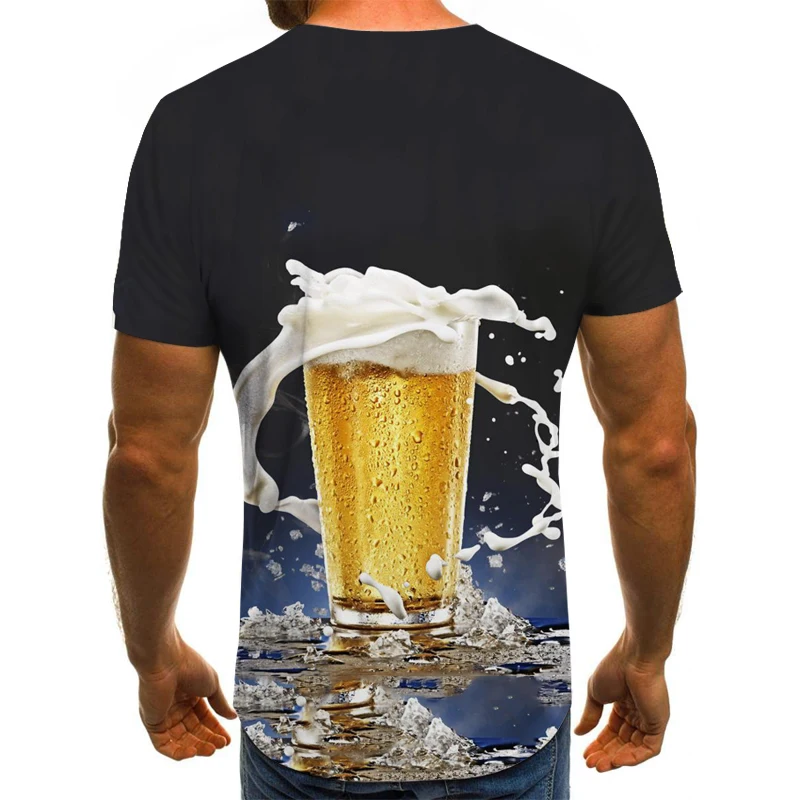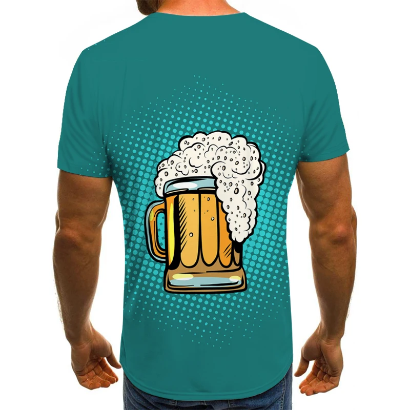 Мужская футболка с 3D-принтом пива, модная летняя крутая футболка с коротким рукавом и мультипликационным принтом, Забавные футболки с графическим принтом и круглым вырезом, 2021