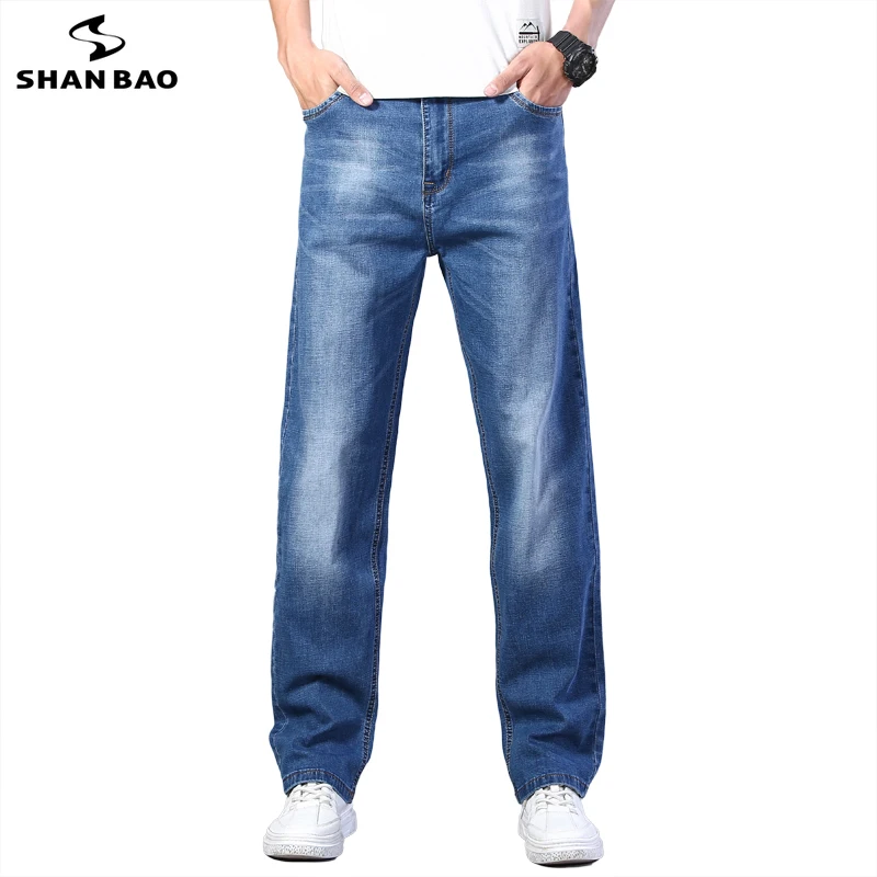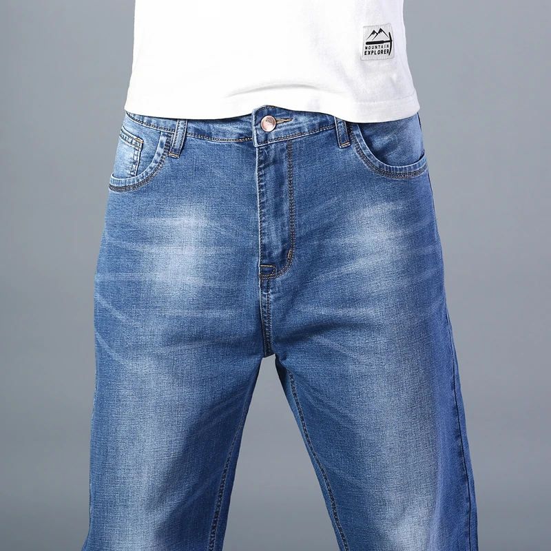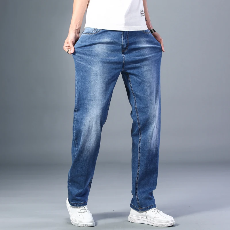 Джинсы мужские легкие из денима, хлопковые Стрейчевые прямые тонкие модные брюки свободного покроя, цвет голубой, 404244, весна-лето