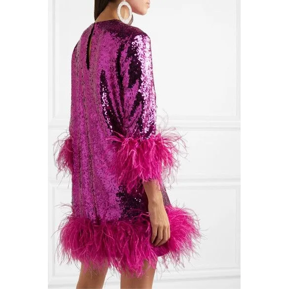 Короткие платья с блестками, прямые, с длинными рукавами, отделанными перьями, для выпускного вечера