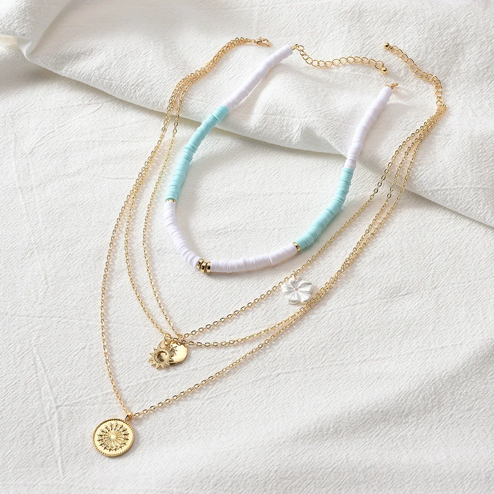 В богемном стиле многослойного цветы колье для женщин Мода Золотое колье в винтажном стиле несколько Подвеска со слоями Halskette, ювелирное изделие, подарок