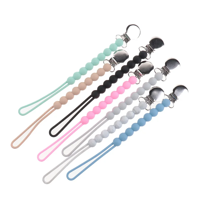 20 шт., силиконовые круглые бусины, Детская цепочка для соски, Детские Силиконовые зажимы для прорезывания зубов, держатель для соски, без бисфенола А, игрушки для прорезывания зубов