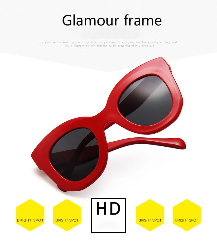 Женские солнцезащитные очки в большой коробке кошачий глаз черные линзы винтажные Роскошные Дизайнерские мужские очки для вождения декоративные UV400