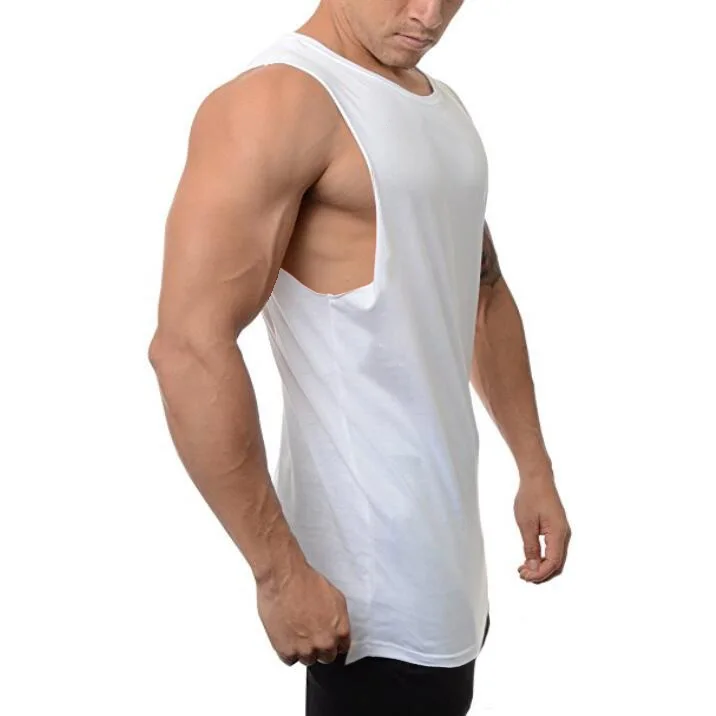Майка для фитнеса мужская, летняя, 100% хлопок, с вырезами по бокам