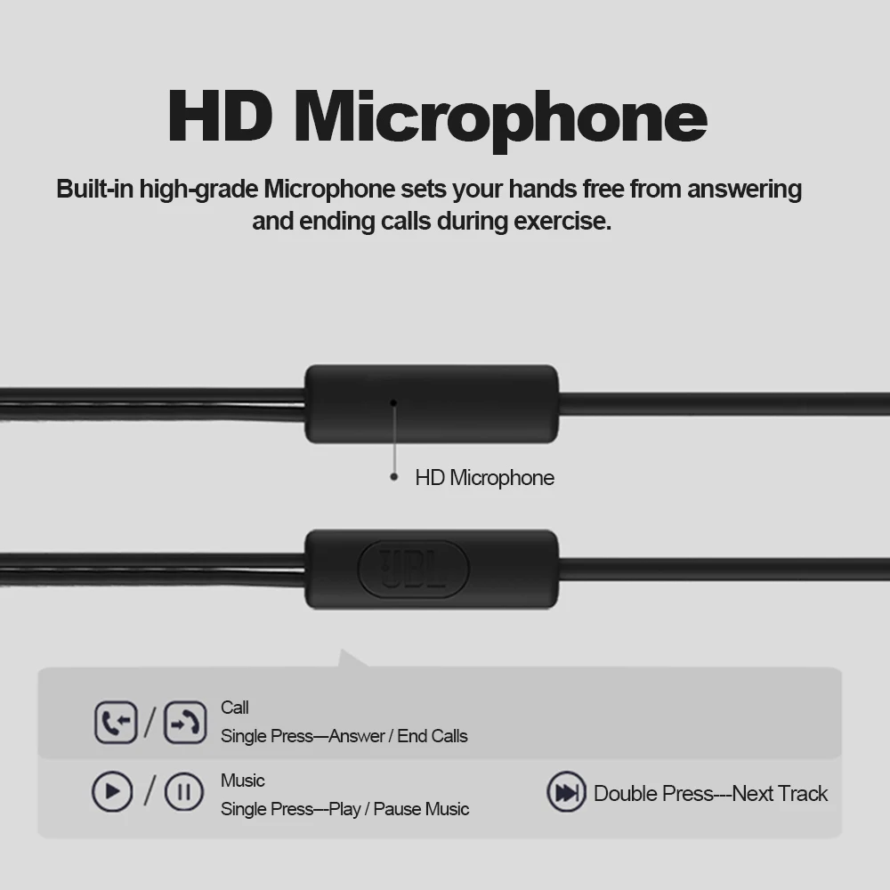 Проводные стереонаушники JBL C100Si, музыкальные наушники с насыщенными басами и штекером 3,5 мм, проводная гарнитура для звонков с микрофоном, спортивные наушники
