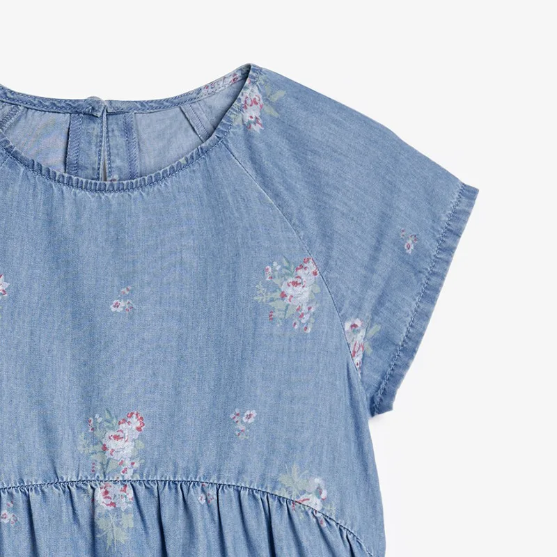 Детское джинсовое платье с длинным рукавом, круглым вырезом и цвето...