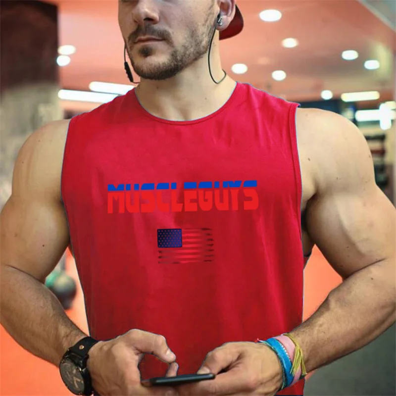 Muscleguys, летний топ, однотонная бодибилдинг, рубашка без рукавов...