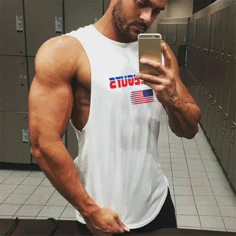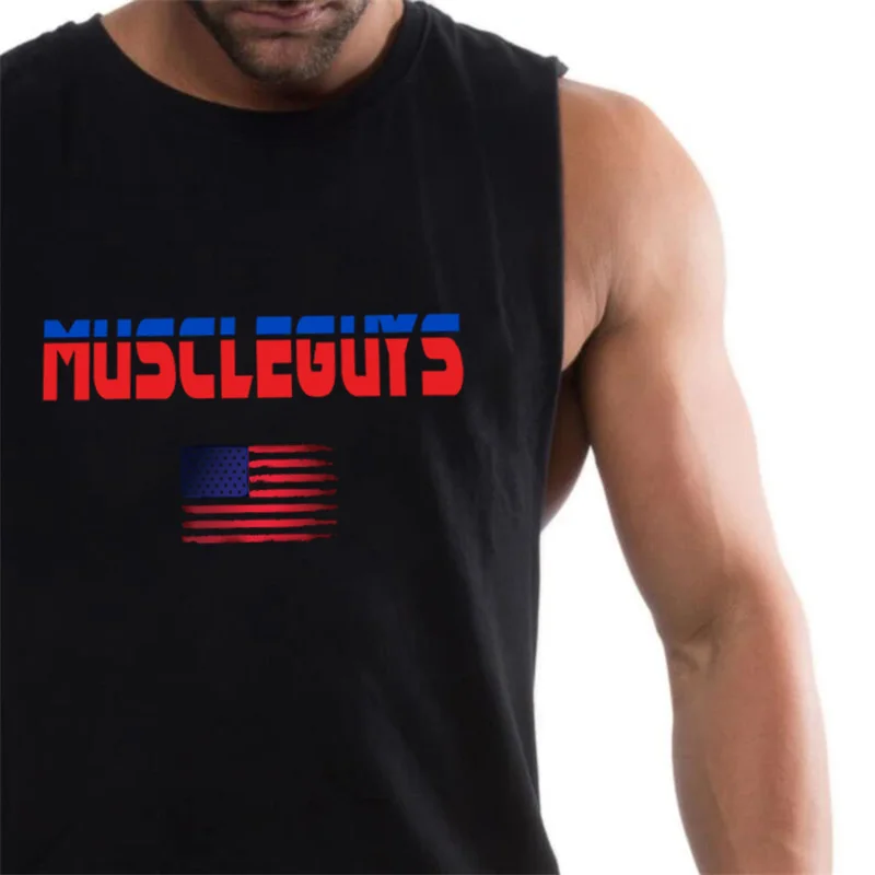 Мужская майка для фитнеса, Спортивная хлопковая майка с американски...