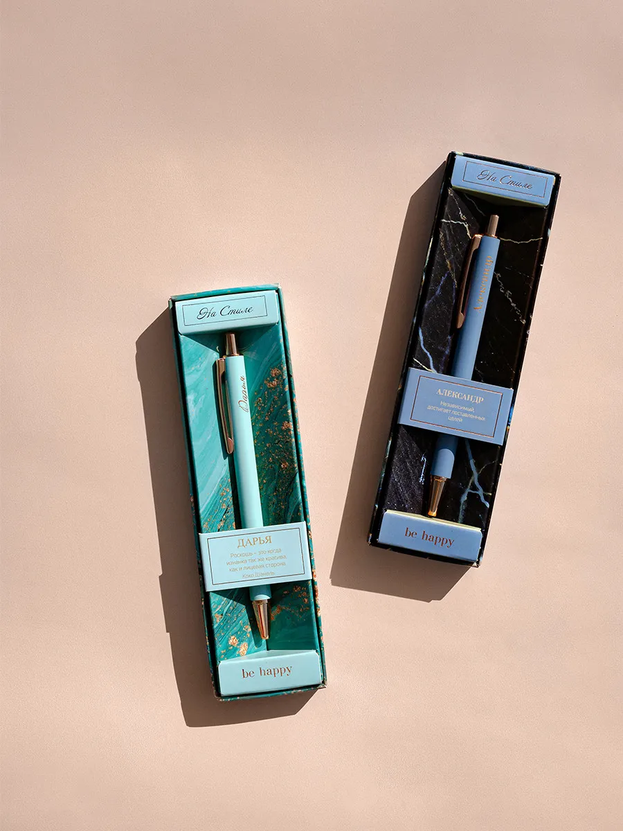 Название бренда BE HAPPY Происхождение Китай Тип Шариковая ручка Назначение Брендированная ручка Материал Металл Новинка Да Промо-ручка Ручка с логотипом Механизм подачи стержня Нажимной Упаковка Подарочная картонная коробкавнешний вид товара