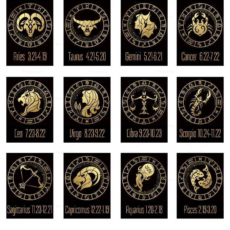 12 созвездия Зодиака Знаки линейка планет плакаты черный и золотой холст живопись спальня настенные художественные принты для украшения дома
