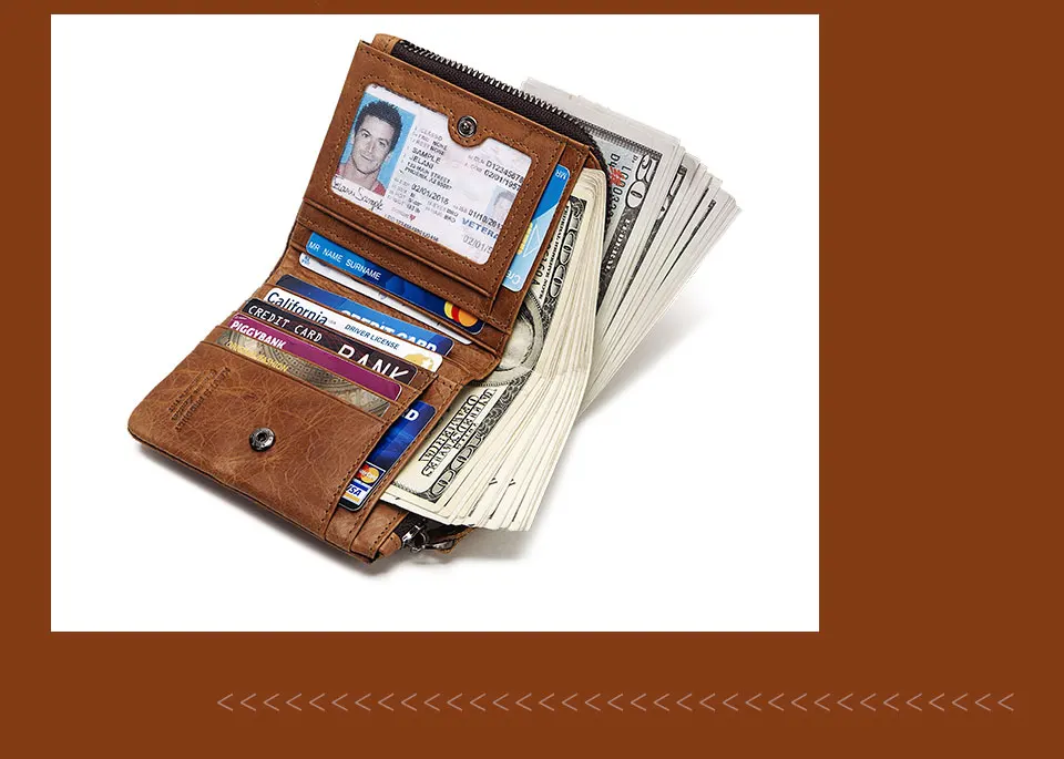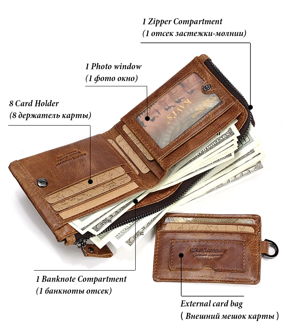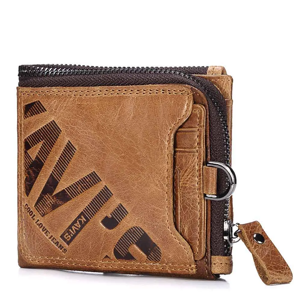 Качественный мужской кошелек из натуральной кожи, брендовый винтажный бумажник на молнии для мужчин, мужской кошелек из воловьей кожи с железной цепочкой и кредитницей