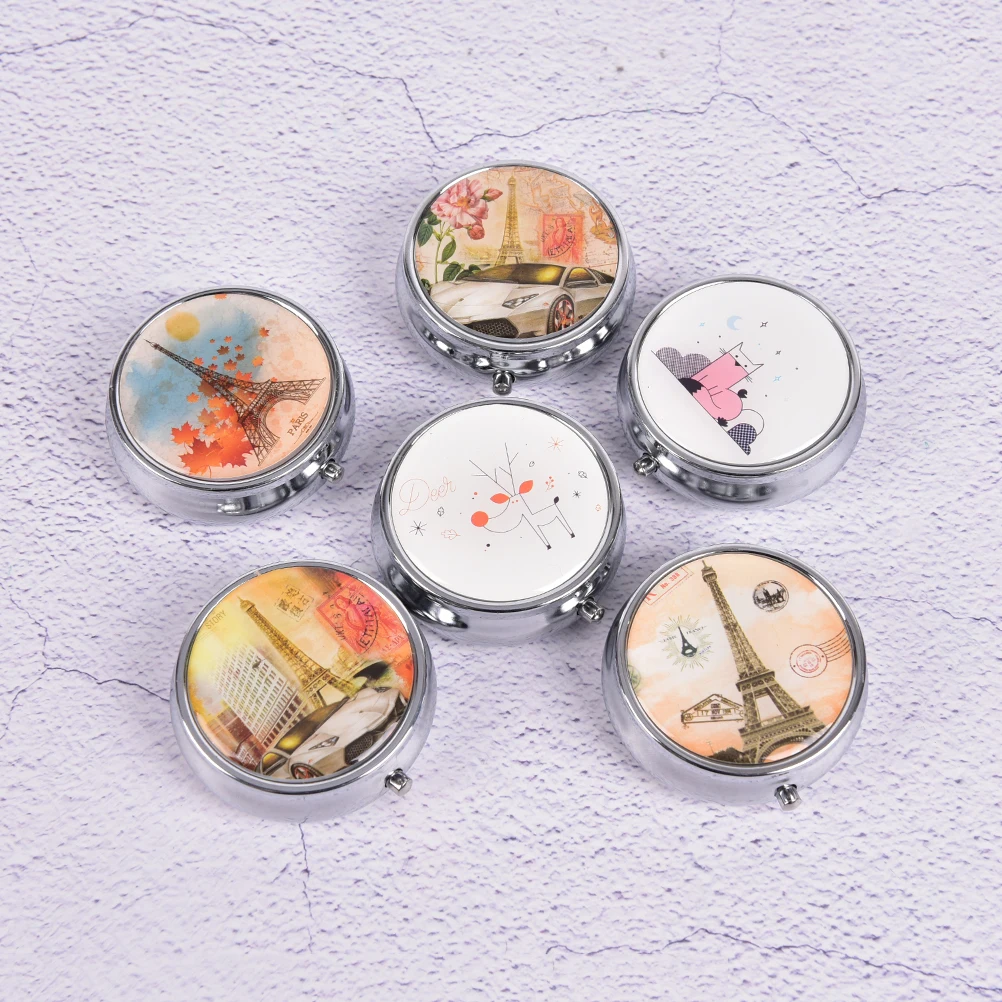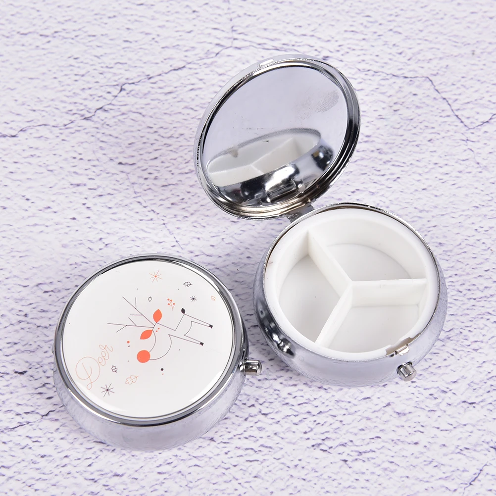 Контейнер для таблеток, 1 шт., милая металлическая коробка для лекарств с круглым отделением, портативный органайзер с цветочным принтом