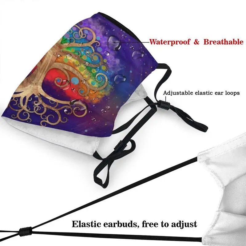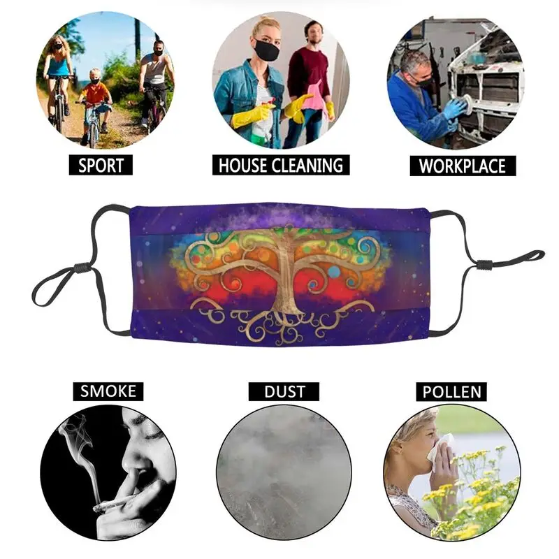 Древо жизни Золотой вихревая и Радуга Моющиеся взрослых Viking рот маска против пыли Защитная крышка респиратор Рот-муфельная печь