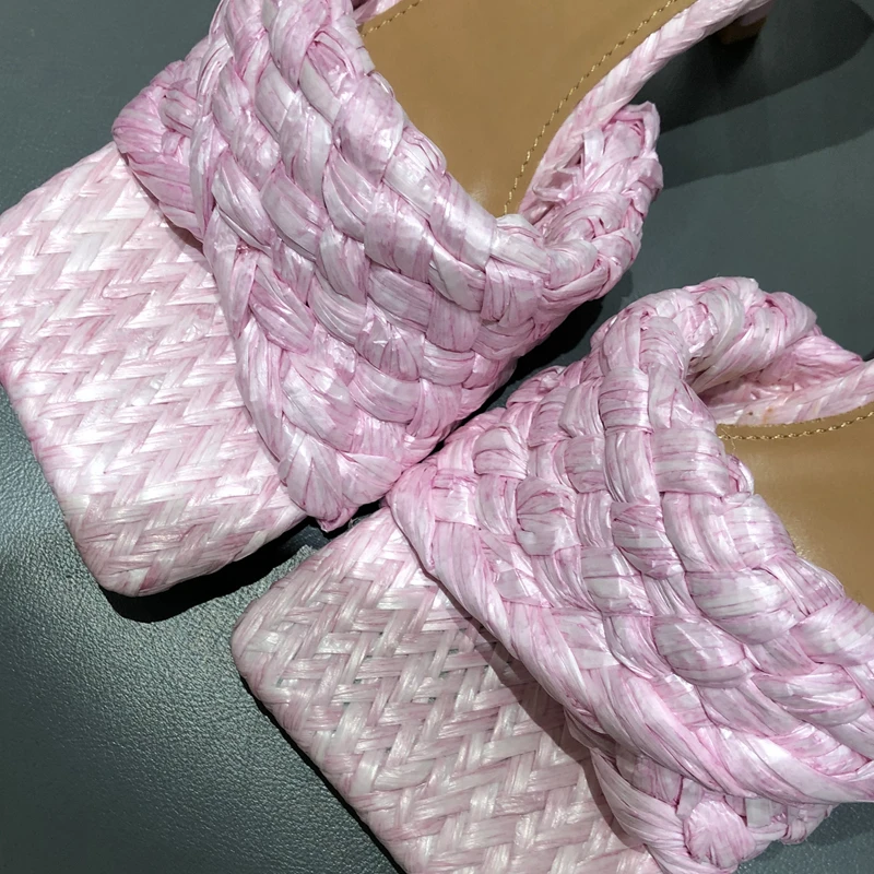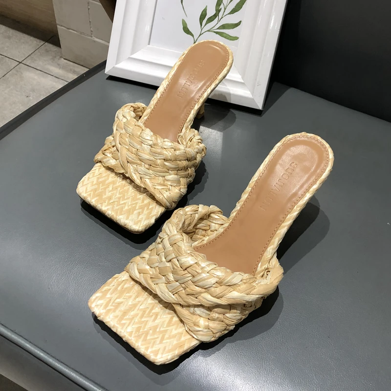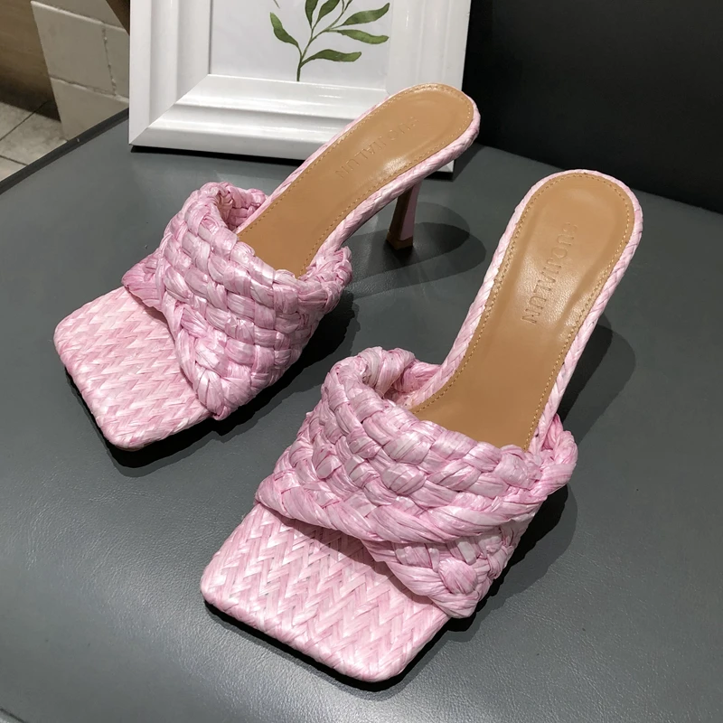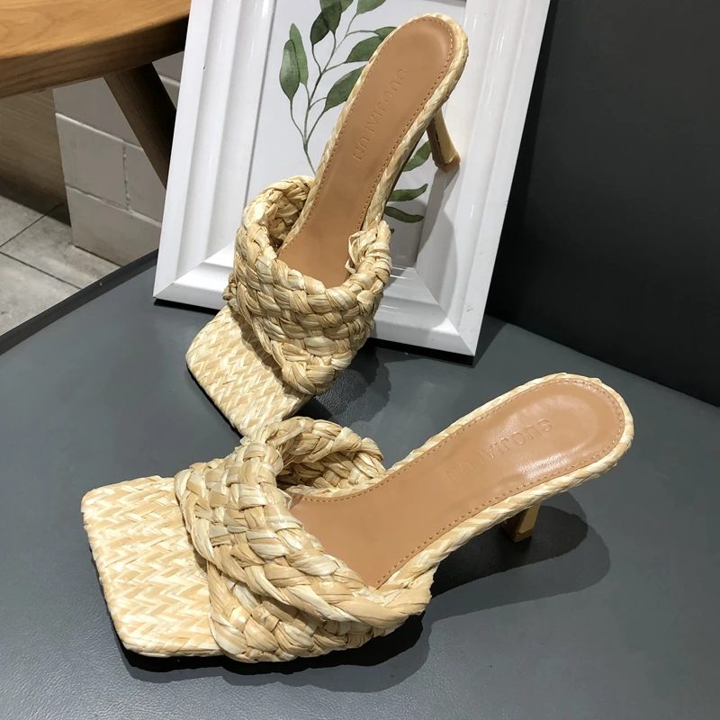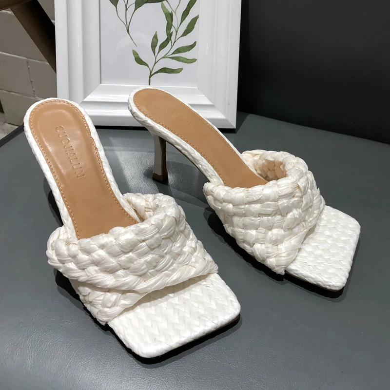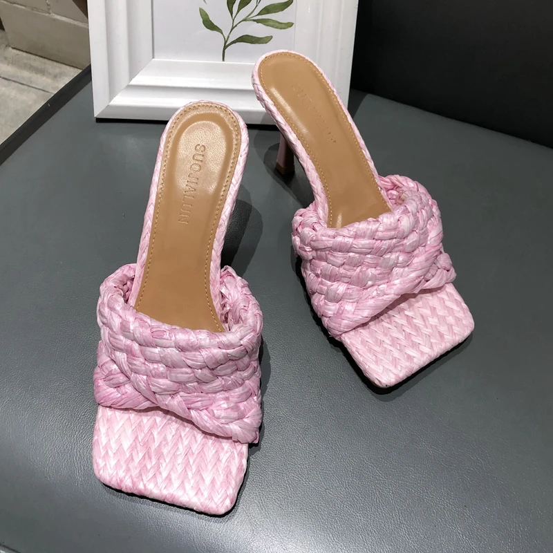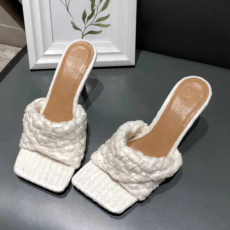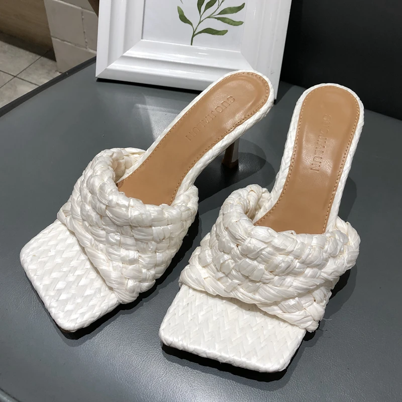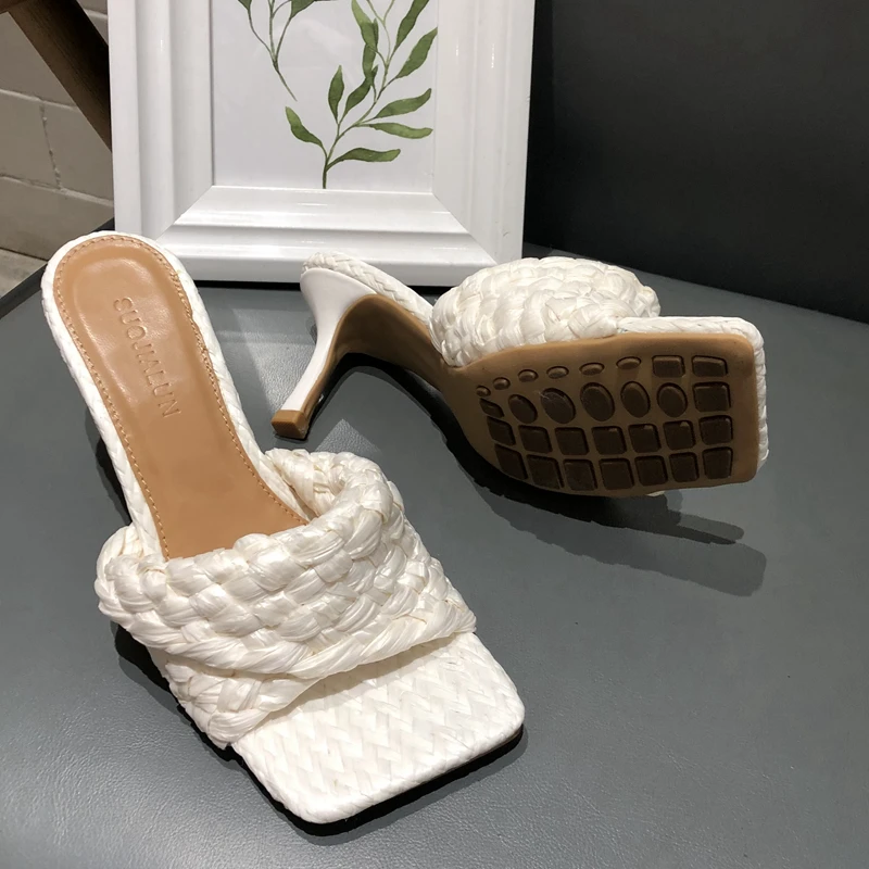 Шлепанцы женские SUOJIALUN, летние, с переплетением, с квадратным носком, на высоком каблуке, 2021