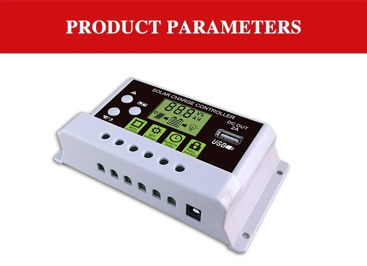 PWM блок управления установкой на солнечной батарее 12V/24V Авто (SupportLithium-железо-фосфатный аккумулятор) Тип контроллера случайный, пожалуйста, обратите внимание. Модель 10A 20A Батарея Напряжение 12V 24V Авто Ток зарядки 10A 20A Ток разрядки 10A 10A Максимальный Солнечный вход: 48 В (для батареи 24 В) 24 В (для батареи 12 В) Выравнивание: 14,4 В (герметичный) 14,2 В (гель) 14,6 в (заливающий) Поплавковый заряд: 13,7 в (defaul, регулируемый) Остановка разряда: 10,7 В (дефол, регулируемый) Разряда Повторное подключение: 12,6 V(defaul, регулируемый) Повторное подключение зарядки: 13 в Напряжение открытого светильник: солнечная панель 8 в (светильник с задержкой) Напряжение близкого светильник: солнечная панель 8 в (светильник с задержкой выключения) Выход USB: 5 В/3 А Самостоятельное использование: <10 мА Рабочая температура: -35 °C ~ + 60 °C Размер: 133,5*70*35 мм * Все красного цвета напряжение X2, при использовании 24V системы. Подключение 1. Подключите аккумулятор к регулятору заряда-плюс и минус. 2. Подключите фотоэлектрический модуль к регулятору-плюс и минус. 3. Подключите потребителя к регулятору заряда-плюс и минус. Обратный заказ применяется при деустановке! Неправильный порядок последовательности может повредить контроллер!