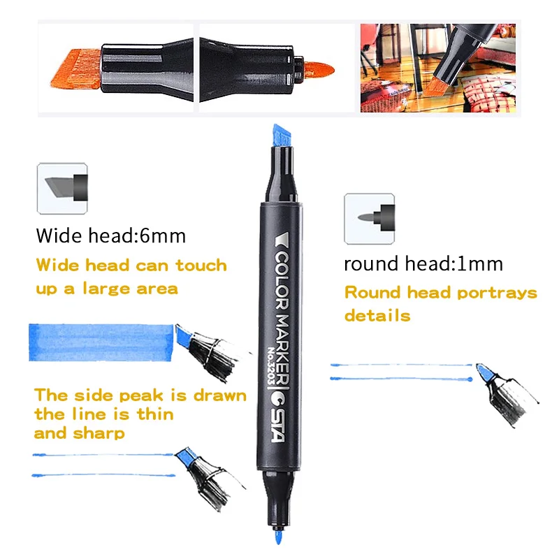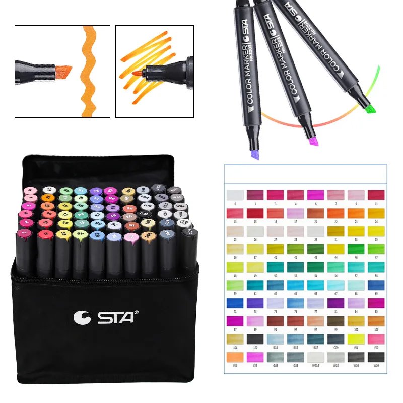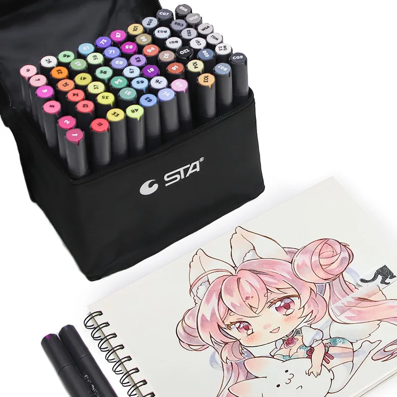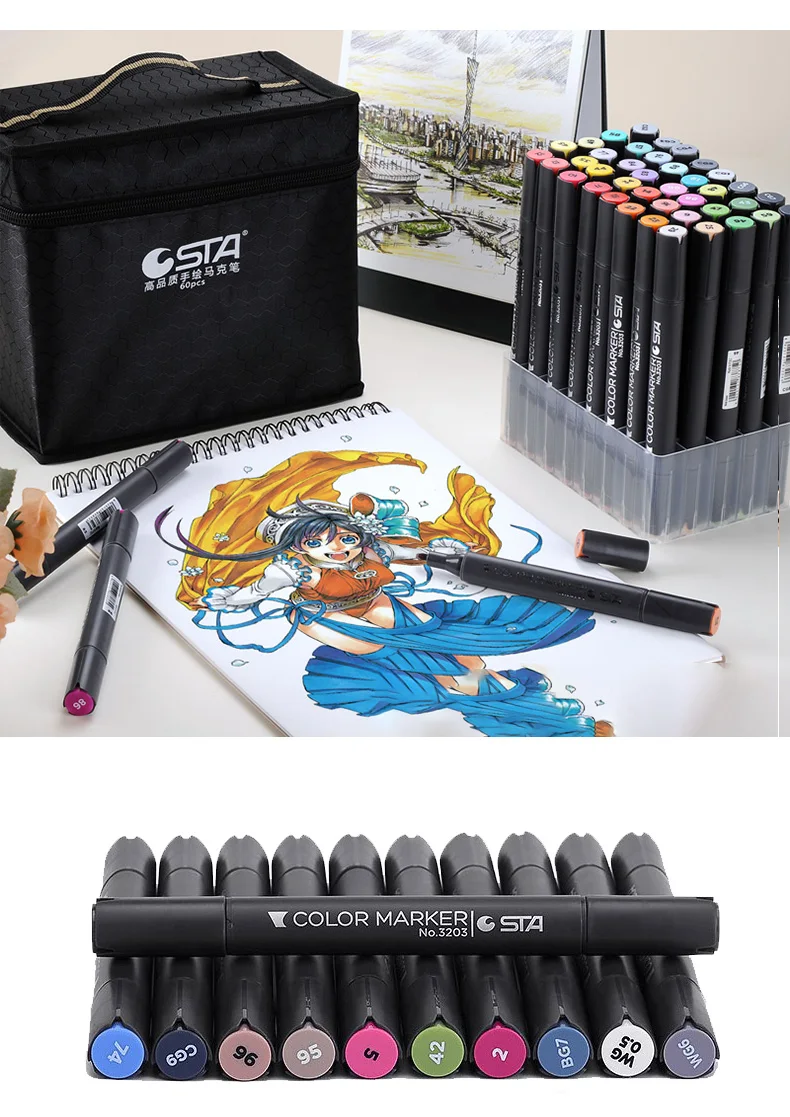 Фломастеры STA, 30406080 цветов, на спиртовой основе, с двойной кистью, товары для рукоделия
