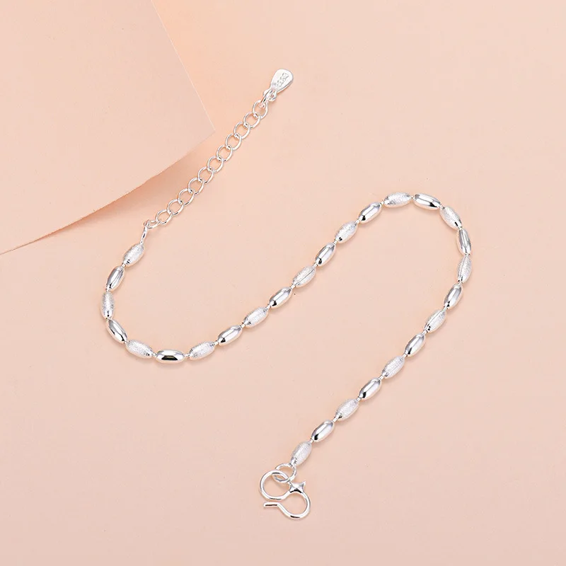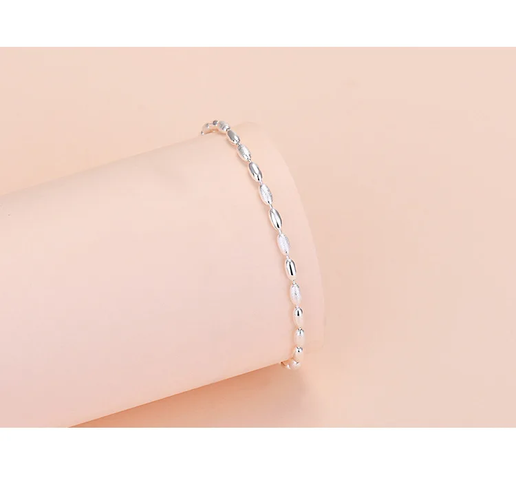 Модные 925 стерлингового серебра браслет женские звенья элегантные Стиль простого покроя для девочек Подвески риса цепь браслет свадебные украшения подарки