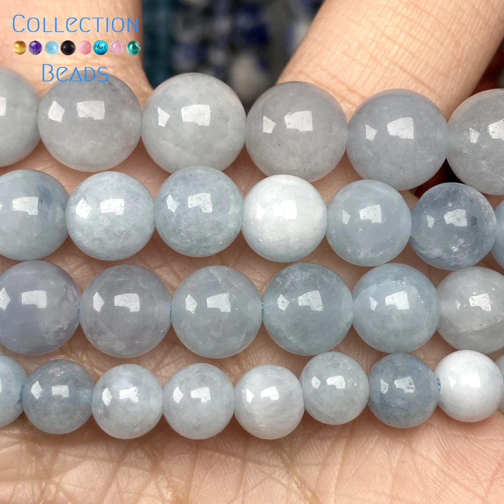 Натуральный камень, аквамарин, халцедон, Свободные Круглые бусины для изготовления ювелирных изделий 6/8/10 мм, аксессуары для браслетов «сделай сам», оптовая продажа 15 дюймов