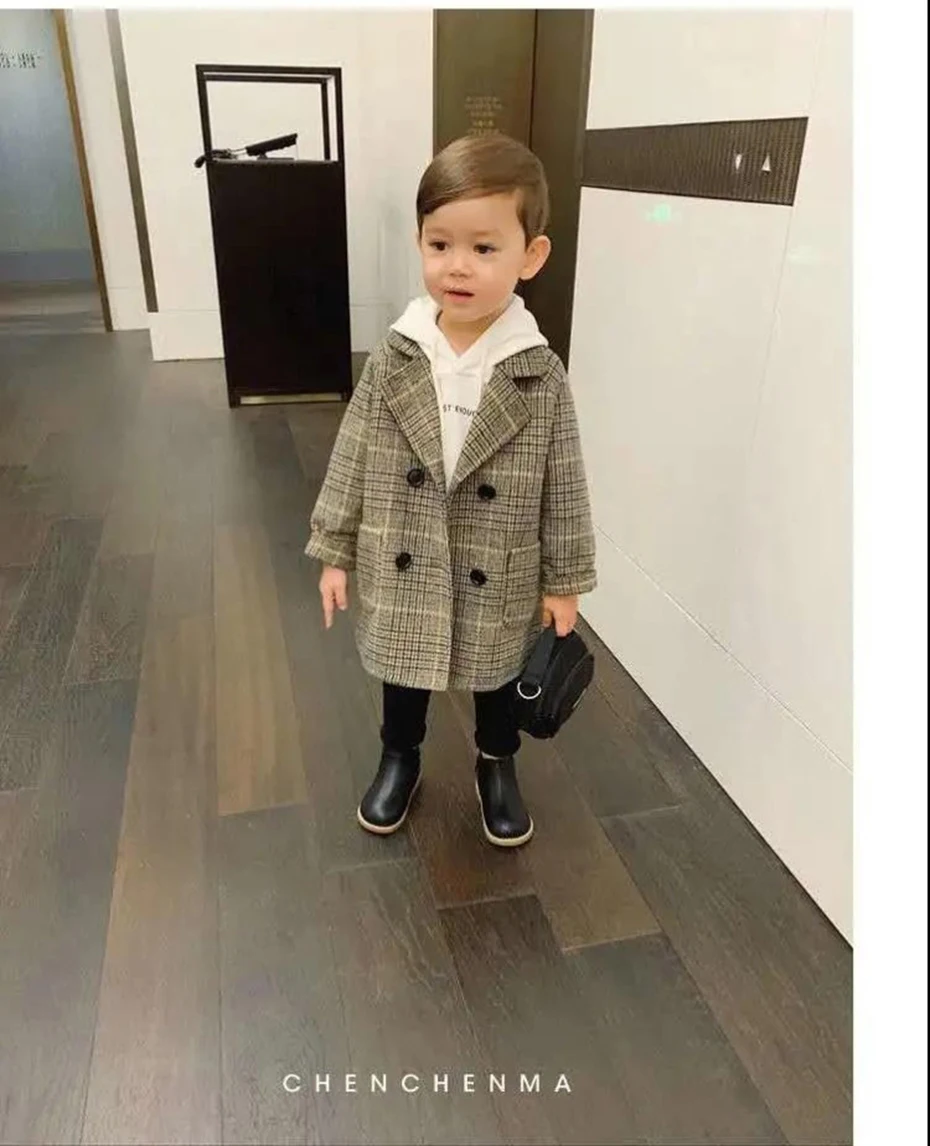 Куртка для мальчиков, длинная, демисезонная, в клетку