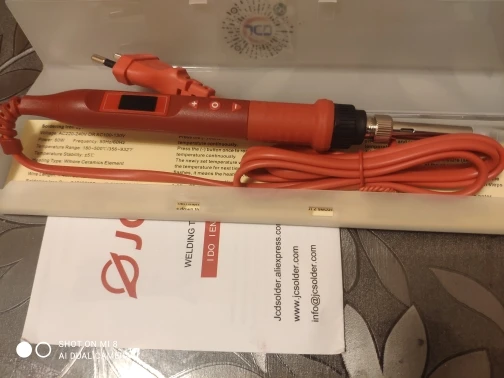 Быстрая доставка в 26 регион, за две недели! Продавец на следующий день отправил посылку. Покупал сыну в подарок просто так- должен у мужчины быть паяльник свой ))) Имею подобный- замечательная штука для дома, всегда найдется, что запаять. Паяльник в отличной упаковке, прям не стыдно и подарить. По сравнению с предыдущей моделью, добавили кнопку ВЫКЛ. На экране заставка бренда JCD ! Эта модель более удобная, под пальцы мягкая силиконовая накладка! Шнур 1,3 метра, довольно мягкий. Паяльник греет- проверил! Очень доволен покупкой, однозначно удобнее предыдущей модели! Продавцу 5 звёзд. Не первая покупка в магазине, всё всегда на 5 баллов. Продавец общителен ! Советую магазин!