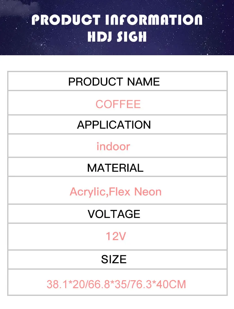 1. Мы можем изготовить все необходимые вам неоновые вывески.Просто предоставьте содержимое, цвет, размер или пришлите нам свои чертежи дизайна и подробные требования2. Настенный монтаж, Установка Подвески, простая и удобнаяИспользуйте проволоку, чтобы повесить ее сверху или прикрутить к стене3. Стандартная вилка для любой страныЕсть вилка для США, вилка для Великобритании, вилка для Австралии и вилка для ЕС4. Один год гарантии на светодиодную неоновую вывескуНаши светодиодные неоновые вывески изготовлены из лучшего качества, поэтому мы можем обещать, что гарантия на открытом воздухе составляет 6 месяцев, гарантия в помещении-1 год. В течение гарантийного срока, если возникнут проблемы с качеством, мы отремонтируем или даже заменим для вас бесплатно.5. Заводская ценаПотому что мы произведены в Фошань, поэтому, когда мы предоставляем вам продукты самого высокого качества, мы также можем предложить вам самую разумную цену.6. Короткое производство и доставкаМы имеем более чем 100 рабочих фабрики и долгосрочные отношения с транспортной компанией. Таким образом, мы можем обещать вам короткий срок производства и доставки. Обычно для производства требуется всего 4-5 рабочих дней, экспресс-доставка около 30-90 дней, коммерческая Экспресс-Доставка 5-7 дней