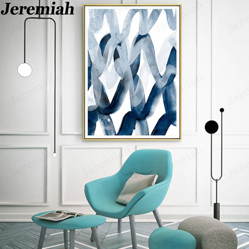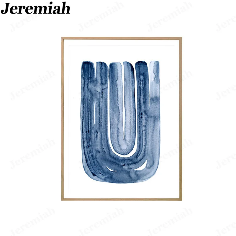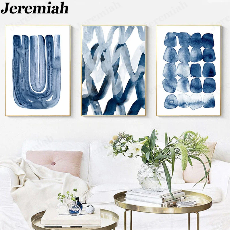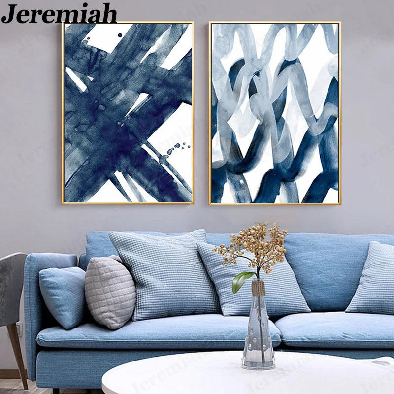 Скандинавский графический плакат на холсте с абстрактными линиями, минимализм, акварель, темно-синие стены, художественная картина, для гостиной, украшение для дома