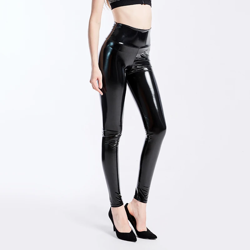 Женские леггинсы с высокой талией VISNXGI, Черные Эластичные Обтягивающие джеггинсы с эффектом пуш-ап, красные и синие штаны из искусственной кожи, новинка