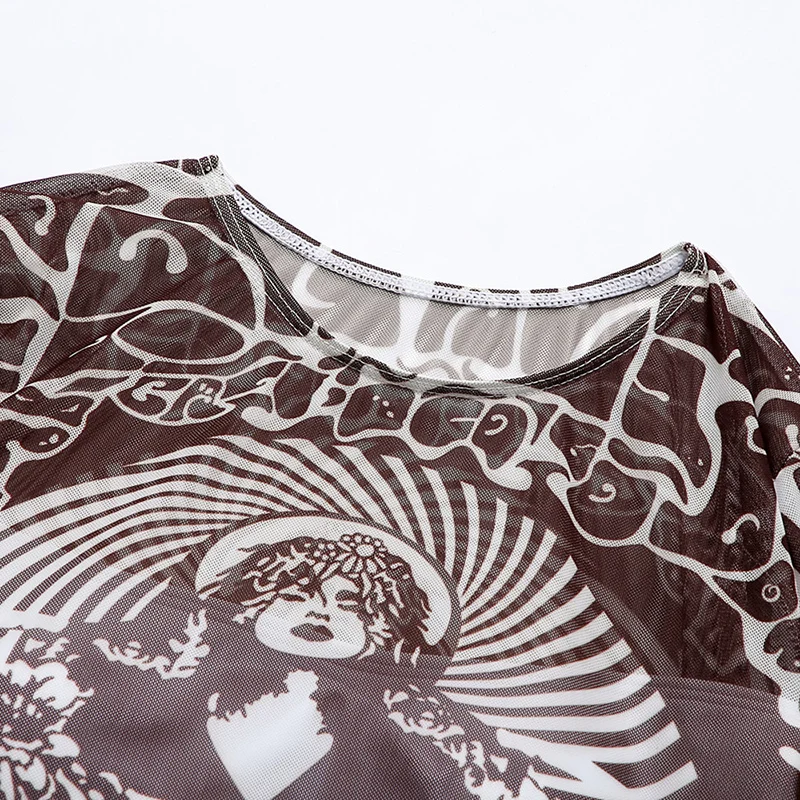 Соблазнительный комплект бикини с винтажным принтом, сетчатый купальник с длинными рукавами, 3 предмета, белый купальник-бандо, женский купальный костюм с высоким вырезом, пляжная одежда