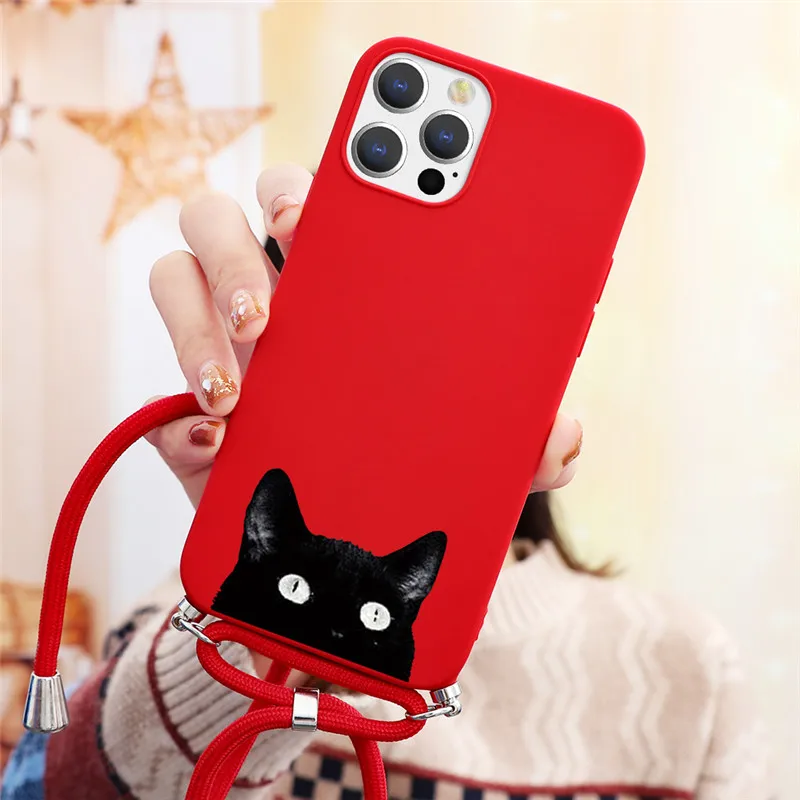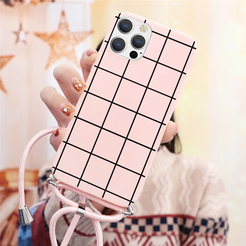 Чехол для iPhone 12 13 Pro Mini XR XS Max X 7 8 SE 2 6 6S Plus, чехол для iPhone 11 Pro Max, ожерелье, шнурок, веревка, мягкий чехол из ТПУ