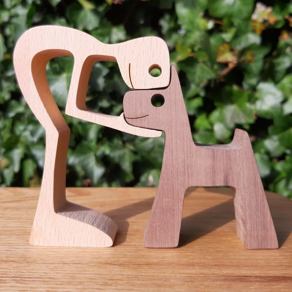 Изготовлено из ручной резной натуральной твердой древесины, с использованием изысканной резьбы по дереву, которая просто и интуитивно показывает чувства между нами и собакой.