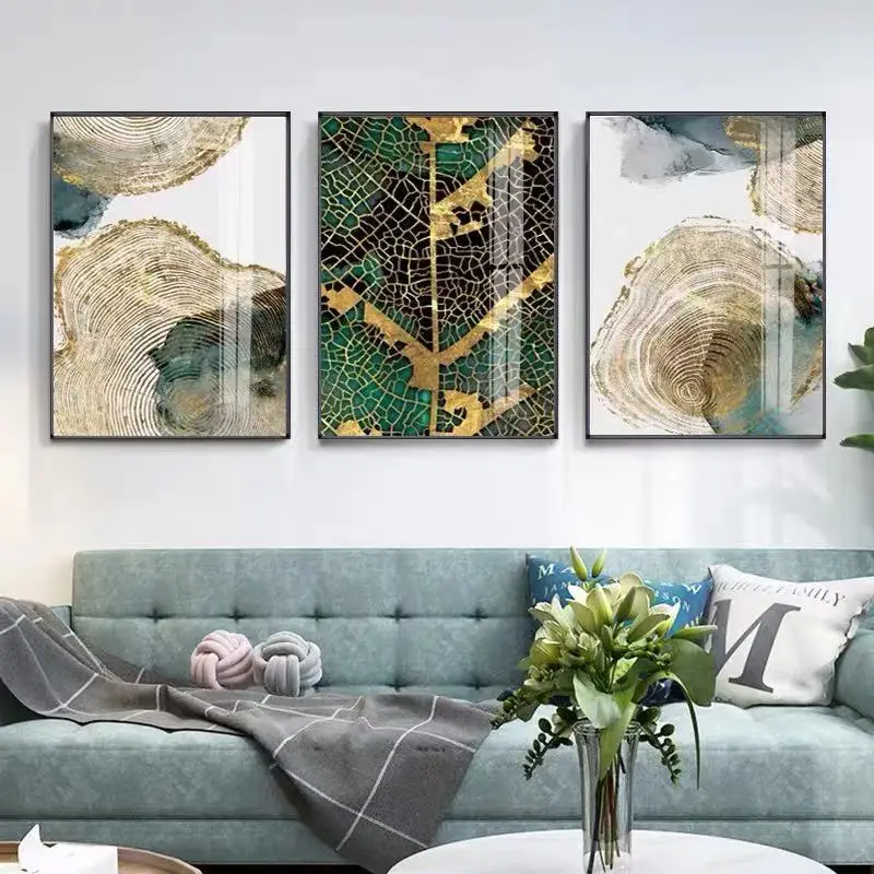 Современная Минималистичная Золотая фольга художественная концепция абстрактная чернильная живопись деревья удачи плакат творческая Тройная комбинация декоративный