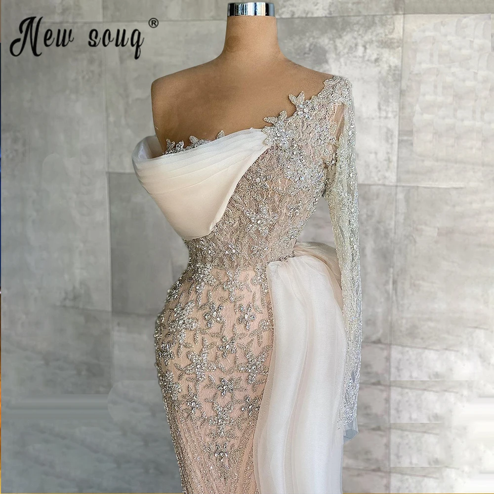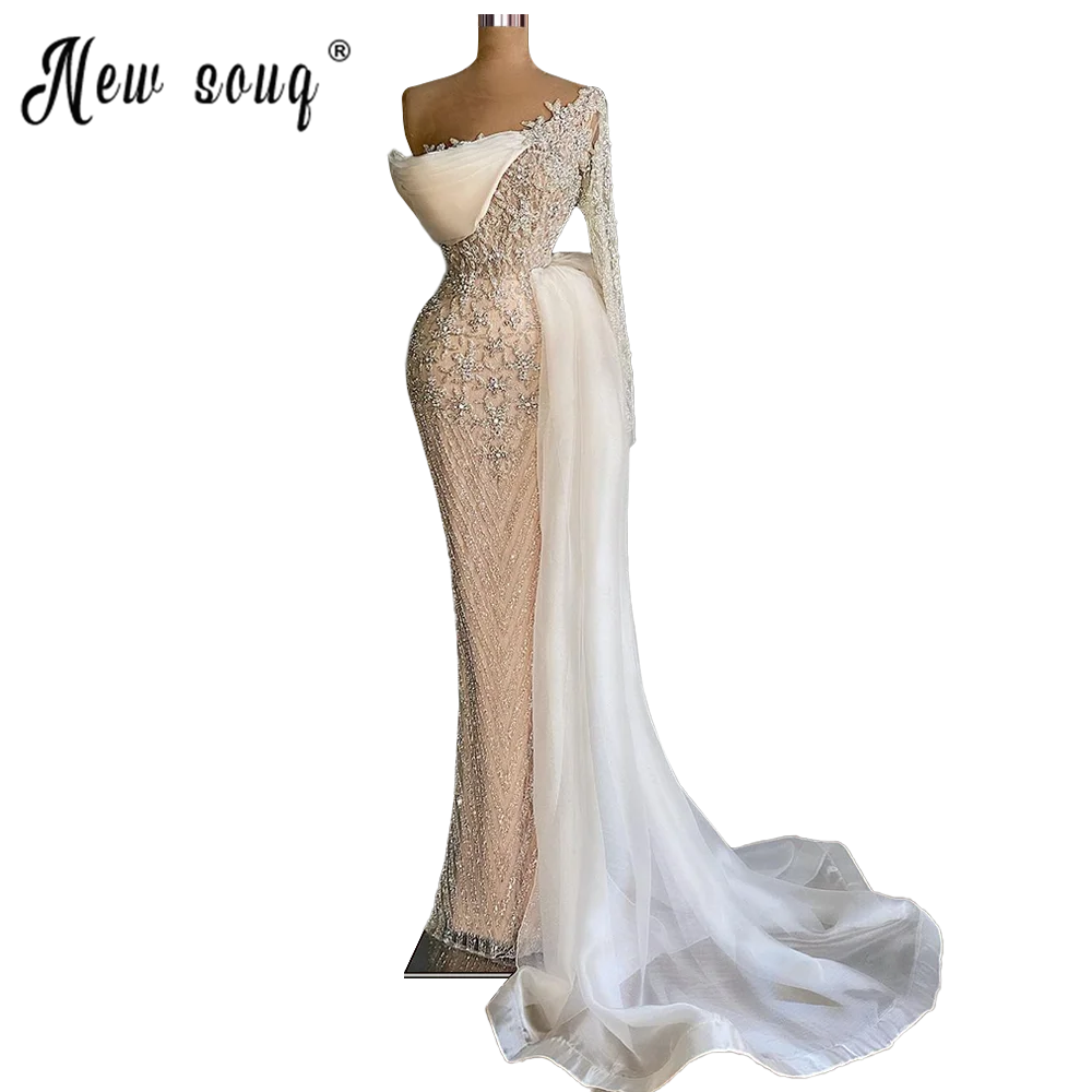 Дубай Среднего Востока на одно плечо длинное вечерние платье с бисером кристаллы Русалка вечернее платье Oranza съемный шлейф