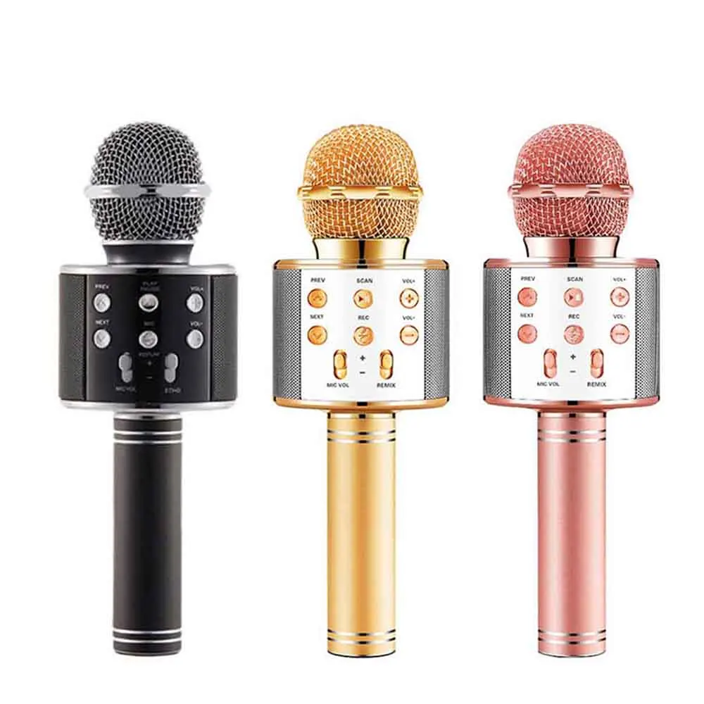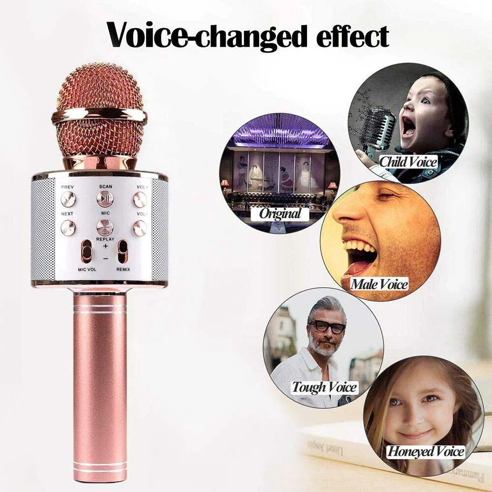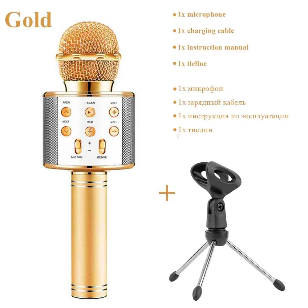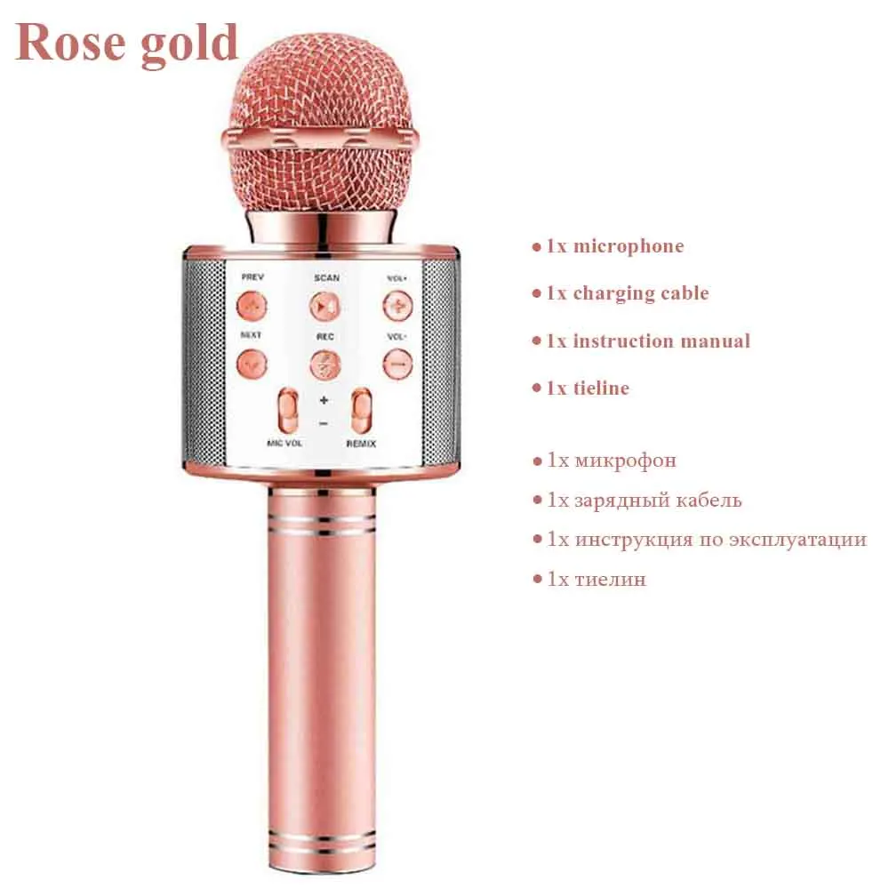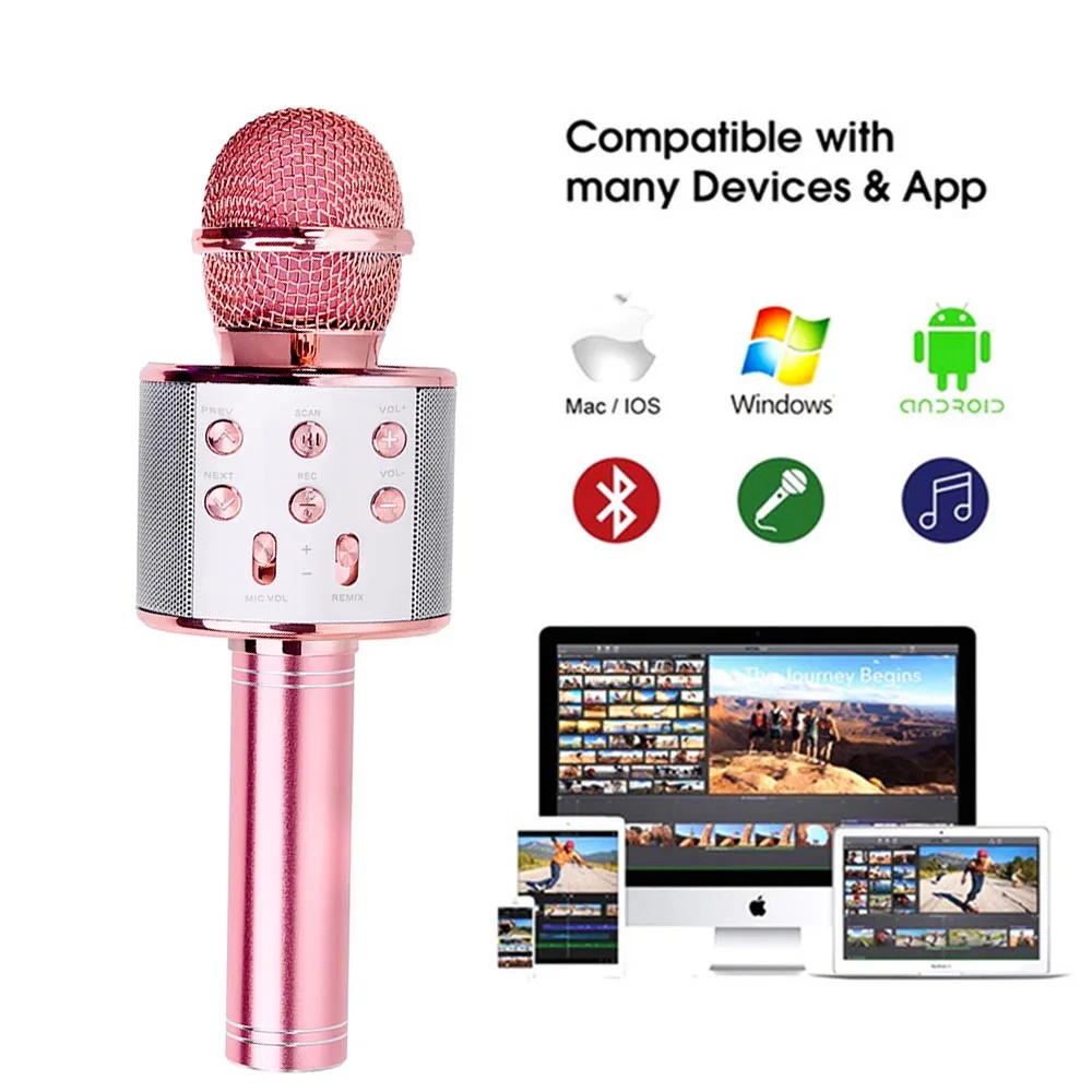 Беспроводной микрофон для караоке, Bluetooth, Портативная колонка, для дома, караоке-проигрыватель с функцией записи, со светодиодной подсветкой, для детей