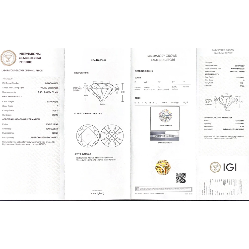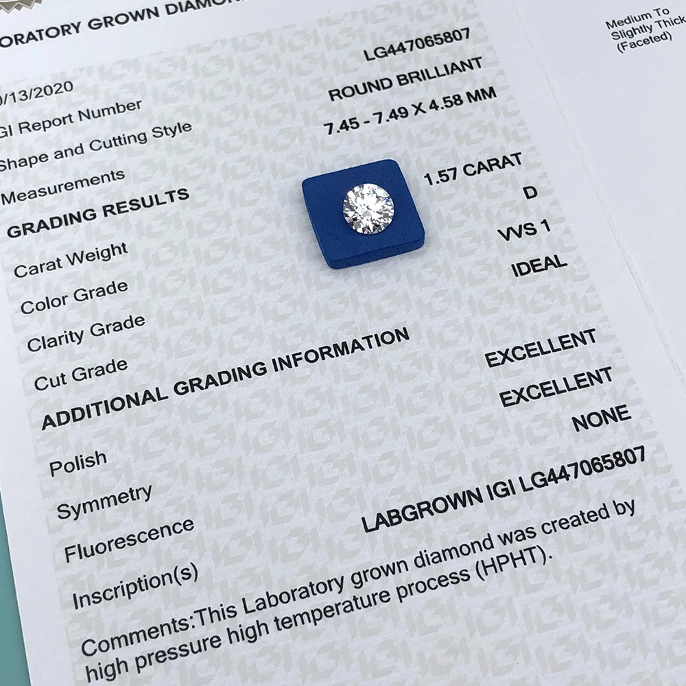 1,5-карат D цветной VVS1 четкость иги сертификат круглый HPHT лабораторный Выращенный алмаз