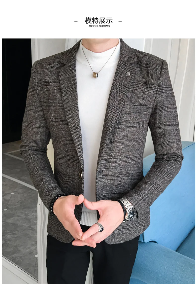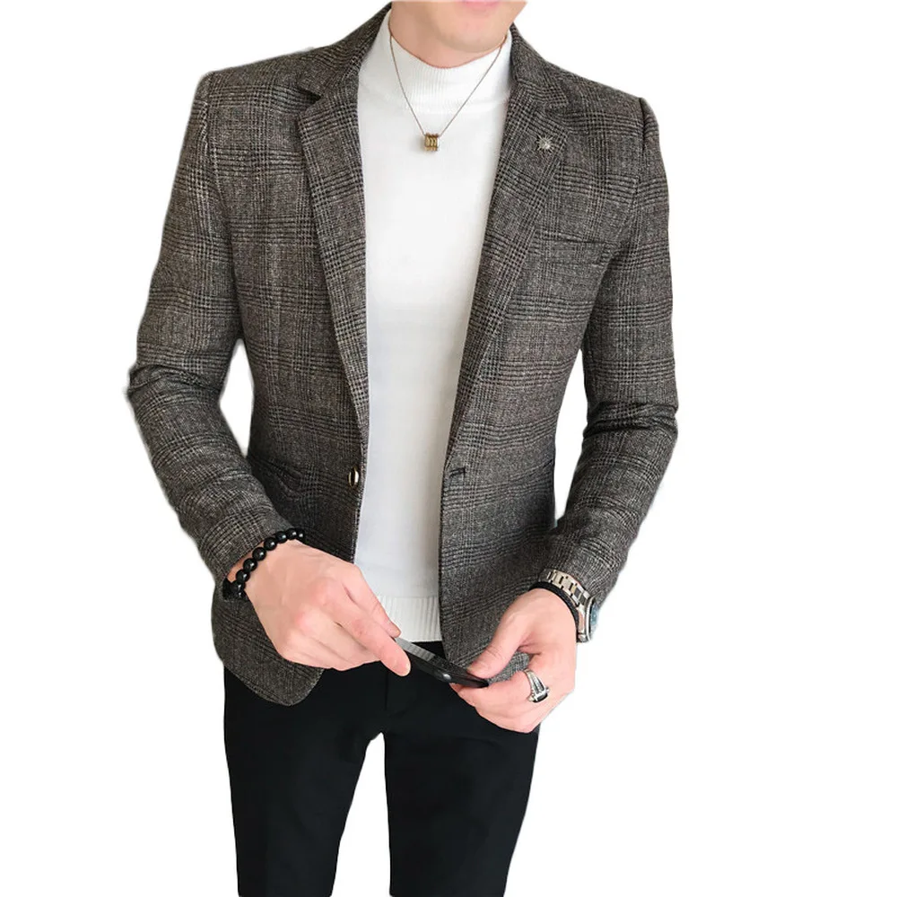 Мужской деловой однобортный Блейзер в клетку, приталенный Повседнев...
