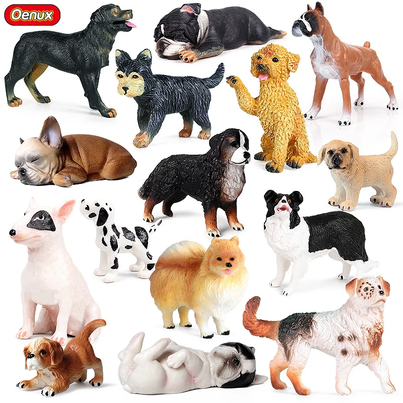 Характеристика:Oenux детская собака животные моделирование милый щенок Шнауцер Чихуахуа бульдог боксер модель фигурки из ПВХ игрушки для детей