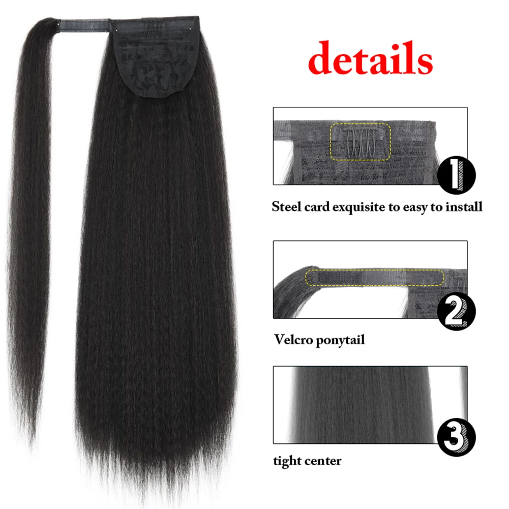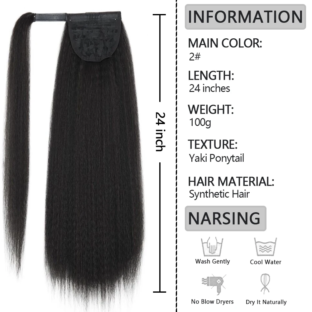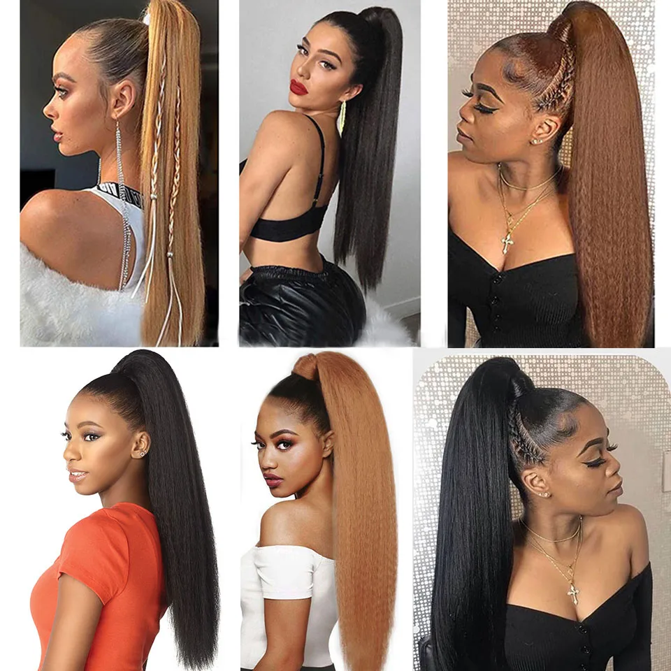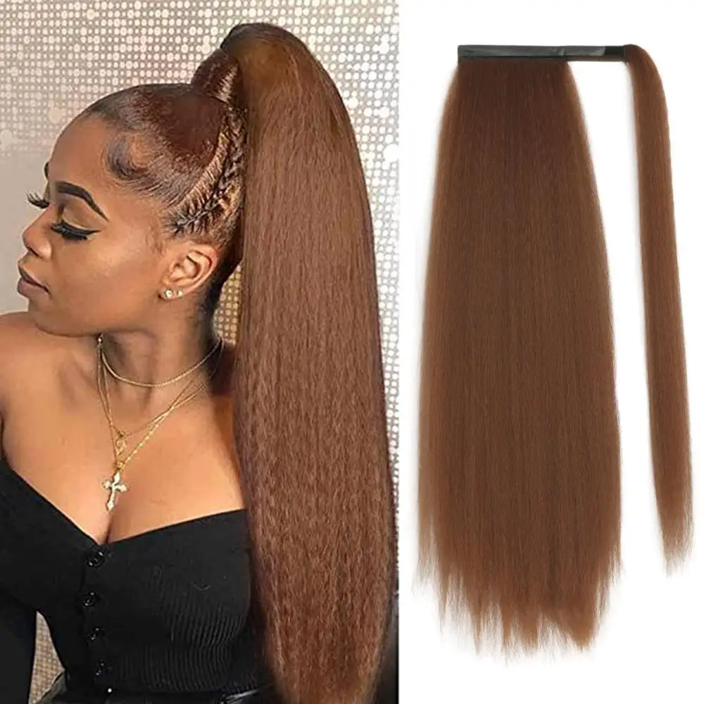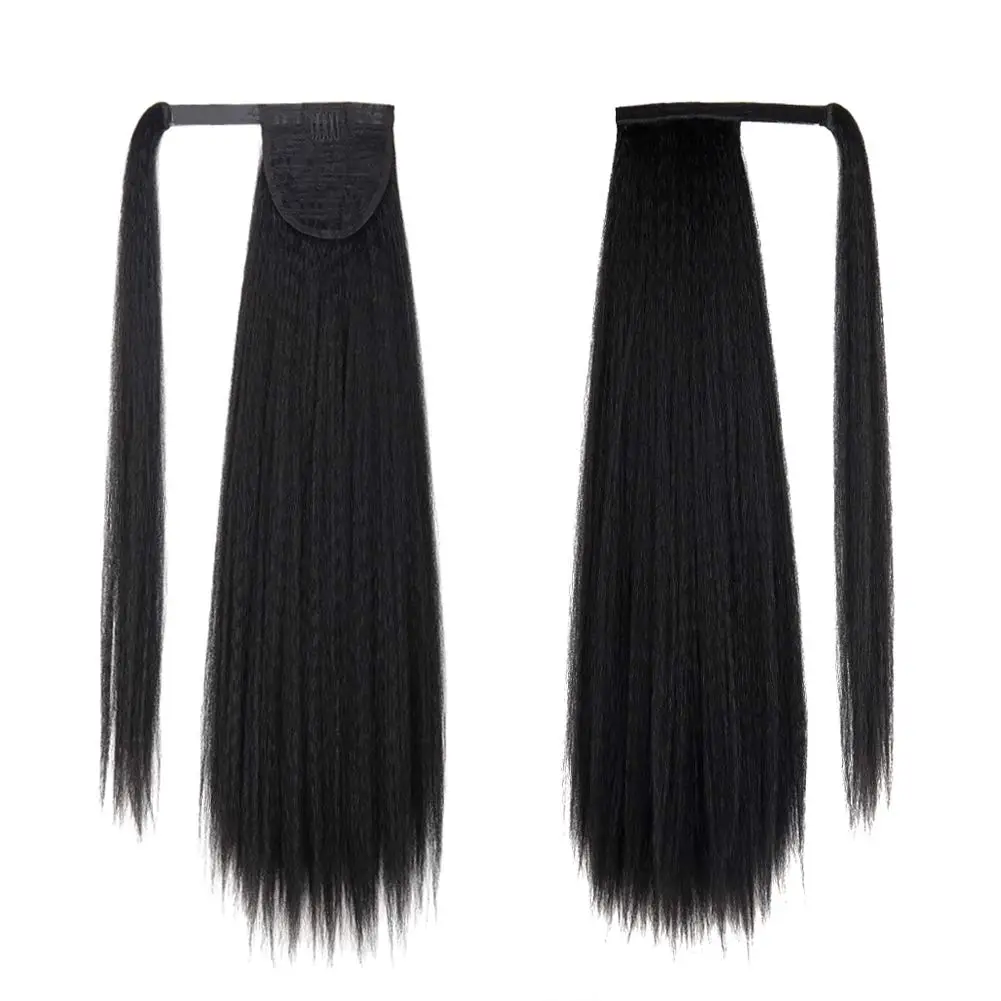 Курчавые прямые длинные накладные волосы для конского хвоста 24 дюйма Волшебная паста термостойкая обертка вокруг конского хвоста Yaki для черных женщин