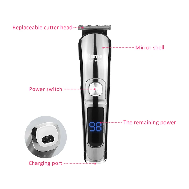 Электрическая машинка для стрижки волос KEMEI, Аккумуляторный триммер с титановыми керамическими лезвиями для салона, Мужская машинка для стрижки волос, Парикмахерская с ЖК-дисплеем
