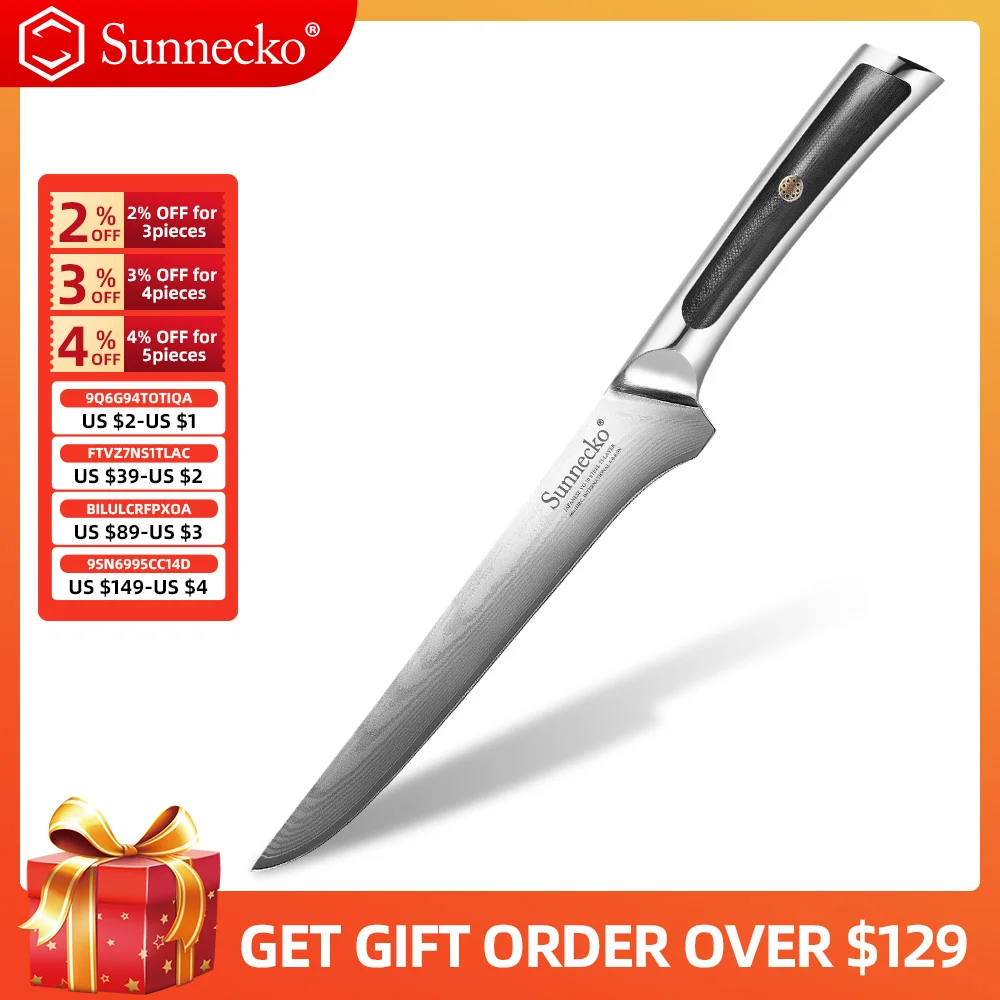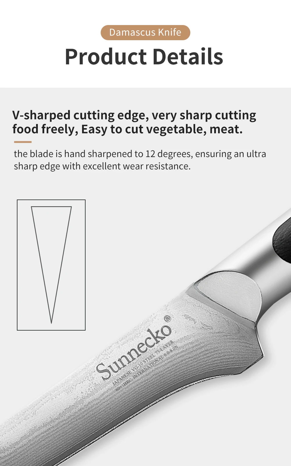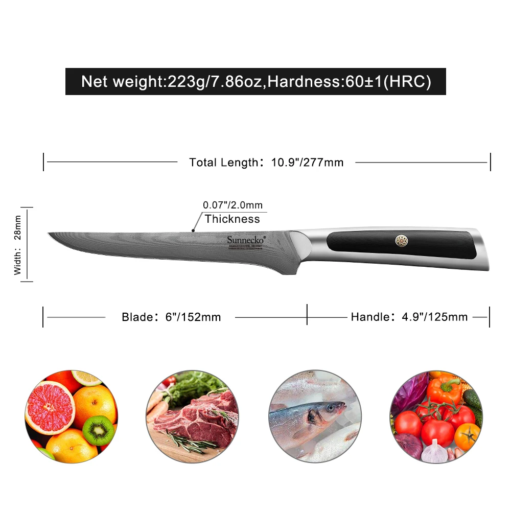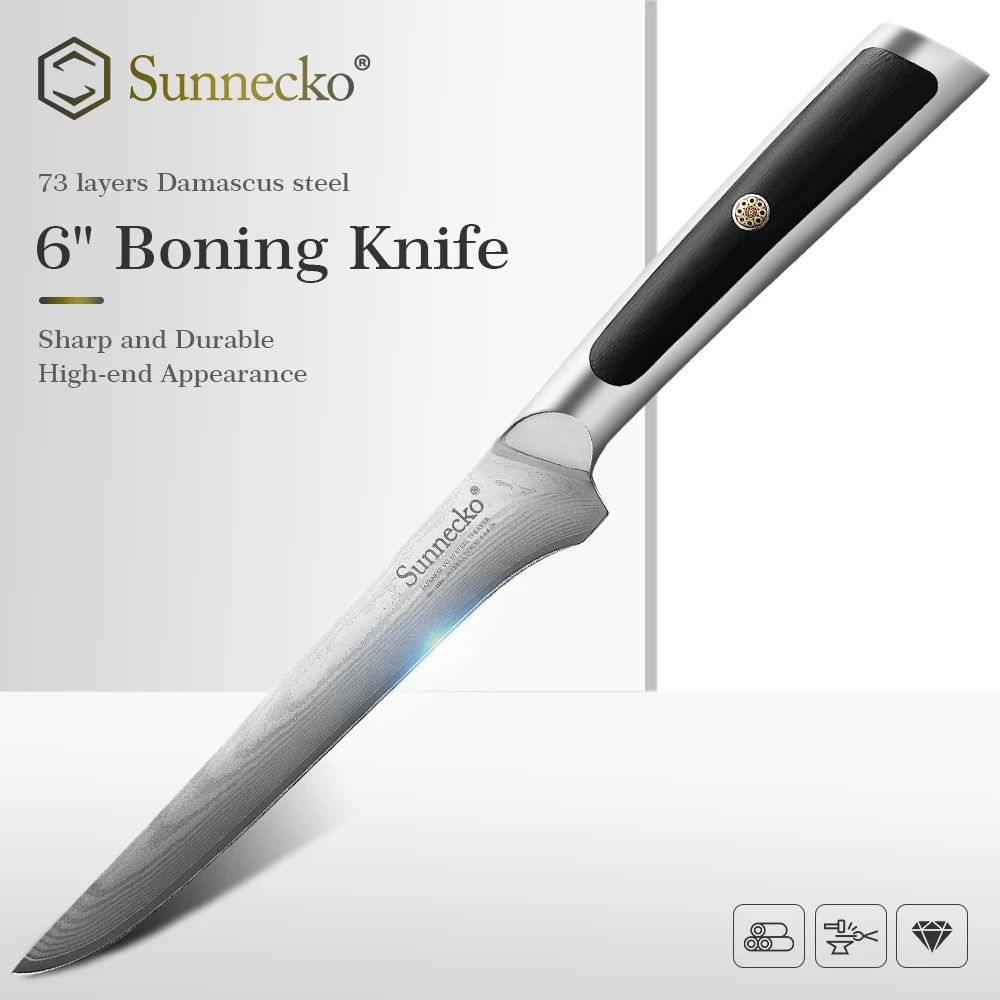 SUNNECKO 6 дюймов нож для обвалки 73 слоя Дамасская японская сталь VG10 острое лезвие кухонные ножи G10 Ручка инструмент для приготовления пищи