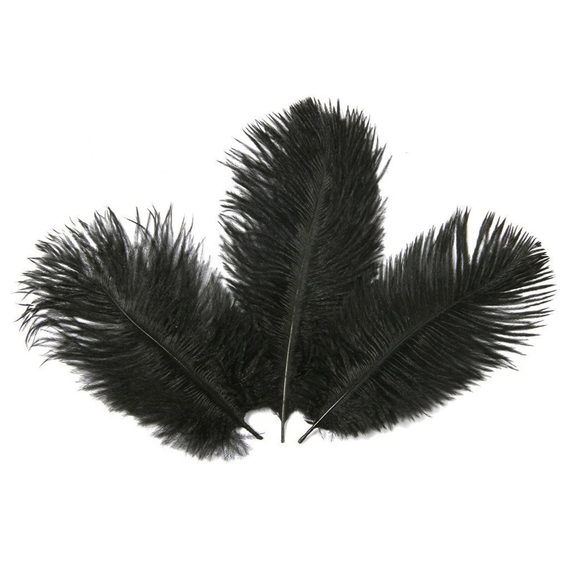 Стержень из натуральных черных страусиных перьев 15-70 см, 10 шт.лот