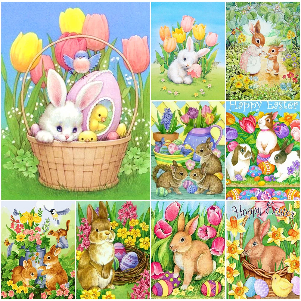 5D алмазная живопись Пасхальный кролик полная выкладка мозаика Алмазная вышивка кролик вышивка крестиком Искусство ремесло для украшения стен Пасхальный подарок