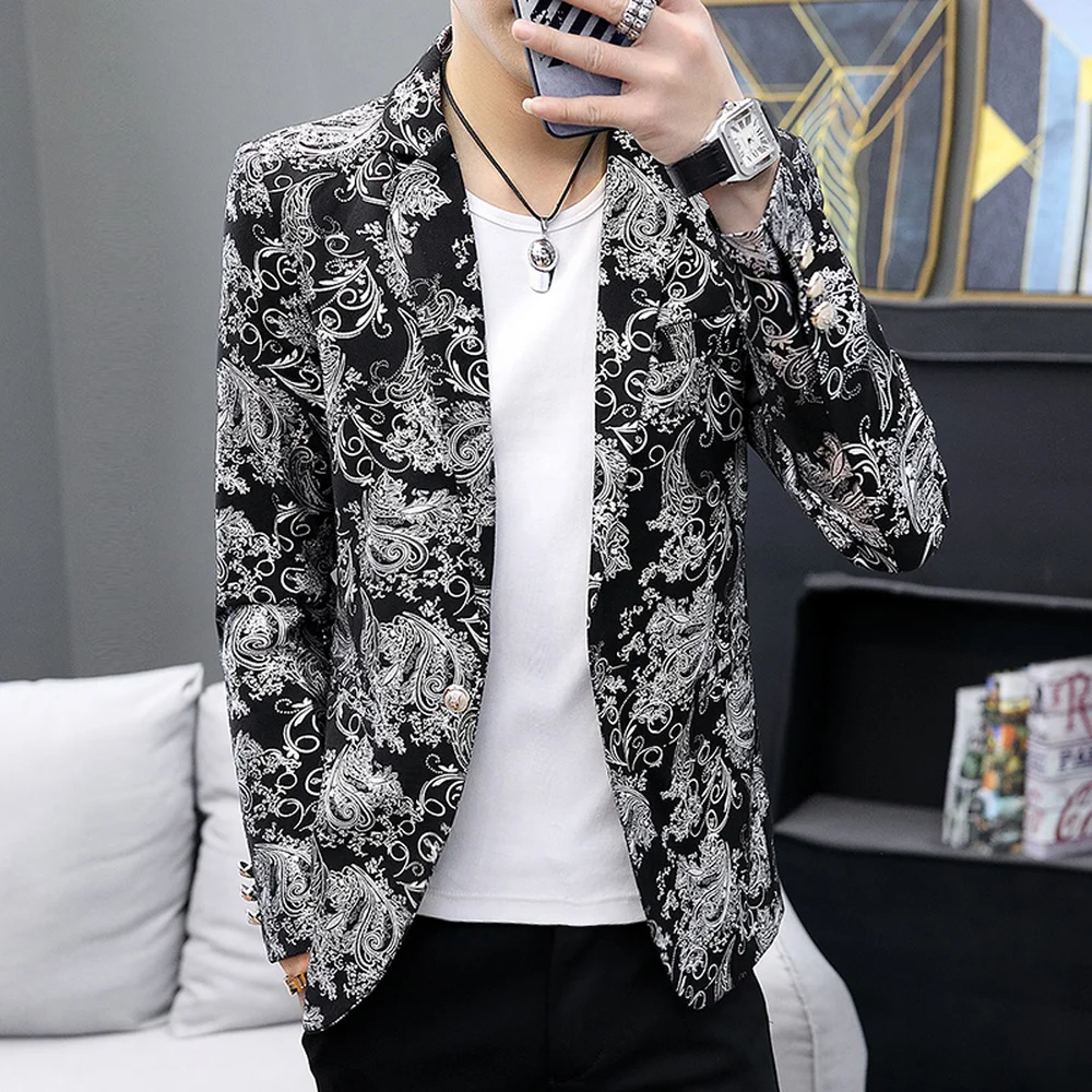 Горячая Распродажа, Мужской Блейзер, модная новинка 2022, женский костюм, повседневный уличный блейзер с цветочным рисунком, официальная одежда, смокинг для ночного клуба