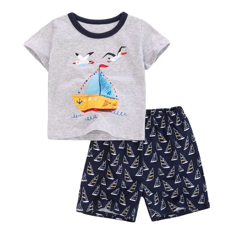 Пижама для мальчиков и девочек TUONXYE, хлопковая, в полоску, с изображением парусника