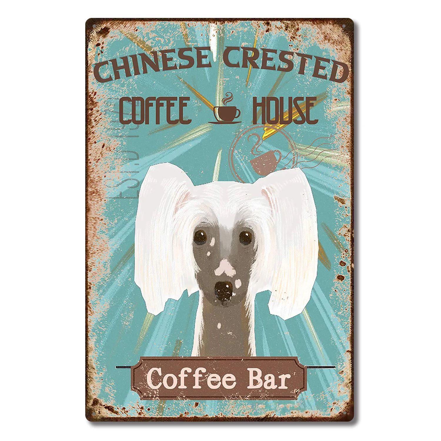 Китайская хохлатая собака, кофейник, собака, кофейный домик, фотоплакат, жестяной знак, Настенный декор, подвесное металлическое украшение 12X8