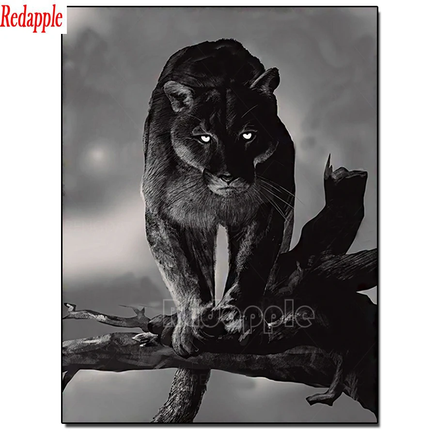 5D круглая Алмазная картина «сделай сам», Черная пантера, вышивка крестиком, животные, полная квадратная Алмазная вышивка, стразы, мозаика, украшение для дома