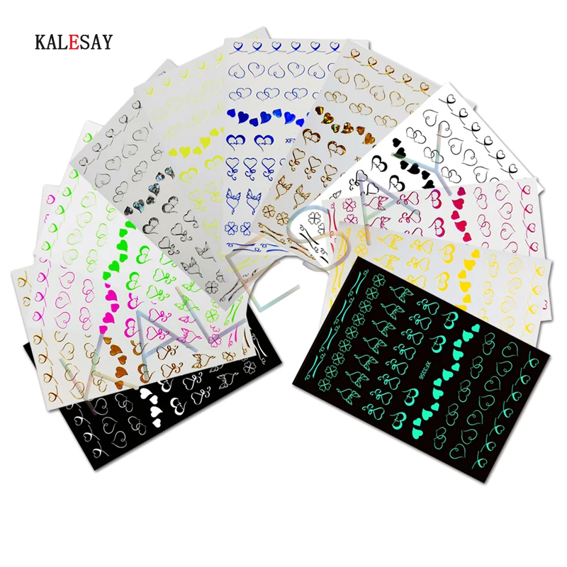 12 цветов, наклейка для ногтей, 3D Маникюр, золотые и серебряные по...