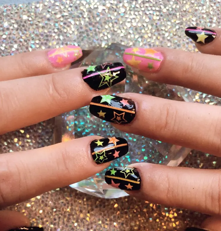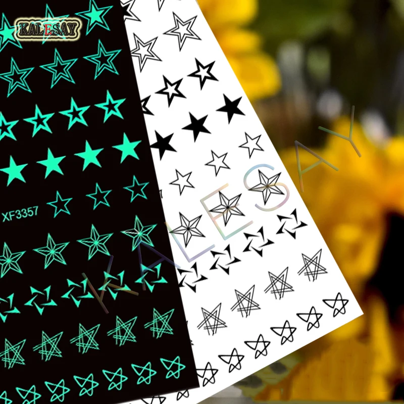 3D стикер для дизайна ногтей Светящиеся темные звезды наклейки для ногтей наклейки дизайн маникюра черная бабочка любовь белый аксессуары для ногтей украшение Примечание: светящаяся темная наклейка для ногтей дневного цвета белого цвета, пожалуйста, возьмите ее под светильник или солнце некоторое время, а затем перейдите в темное место, там будет маленький светильник, как на фотографиях :)
