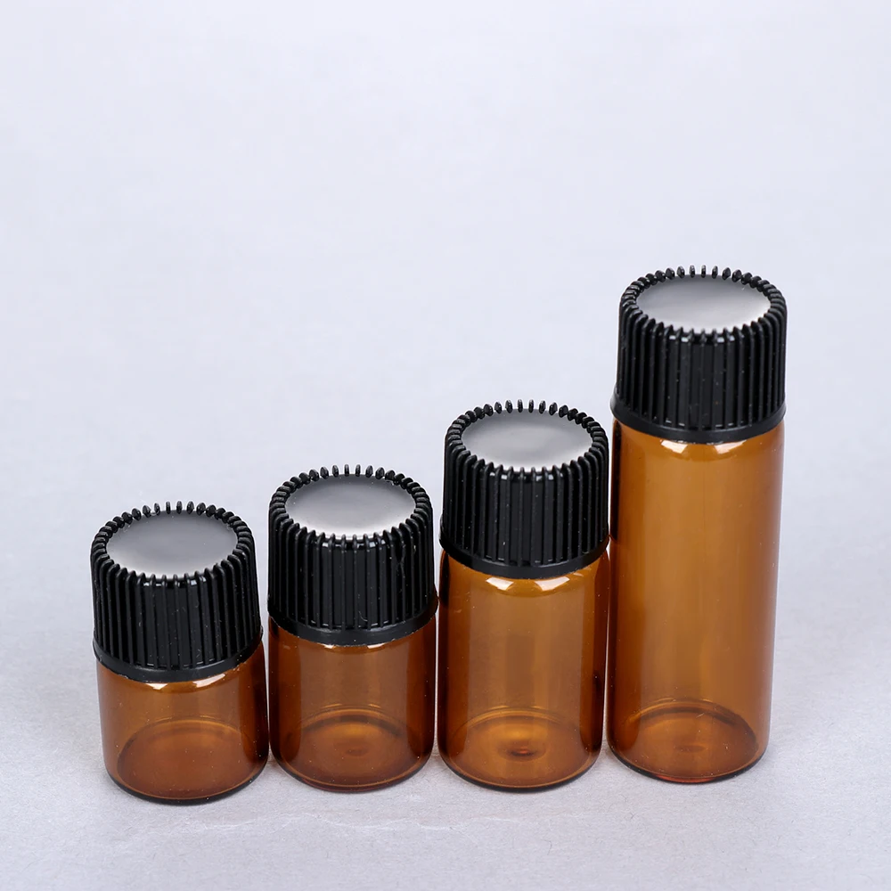 10 шт. 1/2/3/5 мл мини бутылка эфирного масла банка отверстия коричневый редуктор и Кепки Многоразового Использования Бутылки, стеклянные флаконы косметические контейнеры