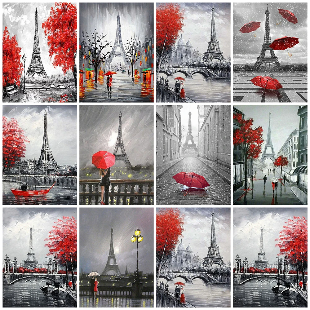 Алмазная живопись 5d HUACAN, черно-красный пейзаж, алмазная вышивка крестиком, город, домашний декор, набор для рукоделия