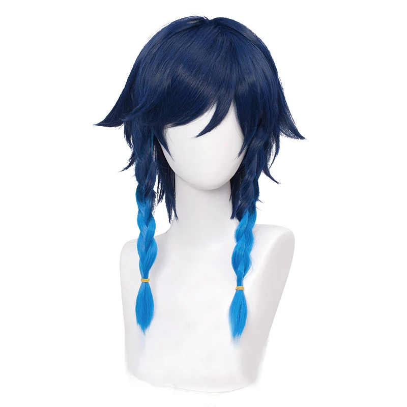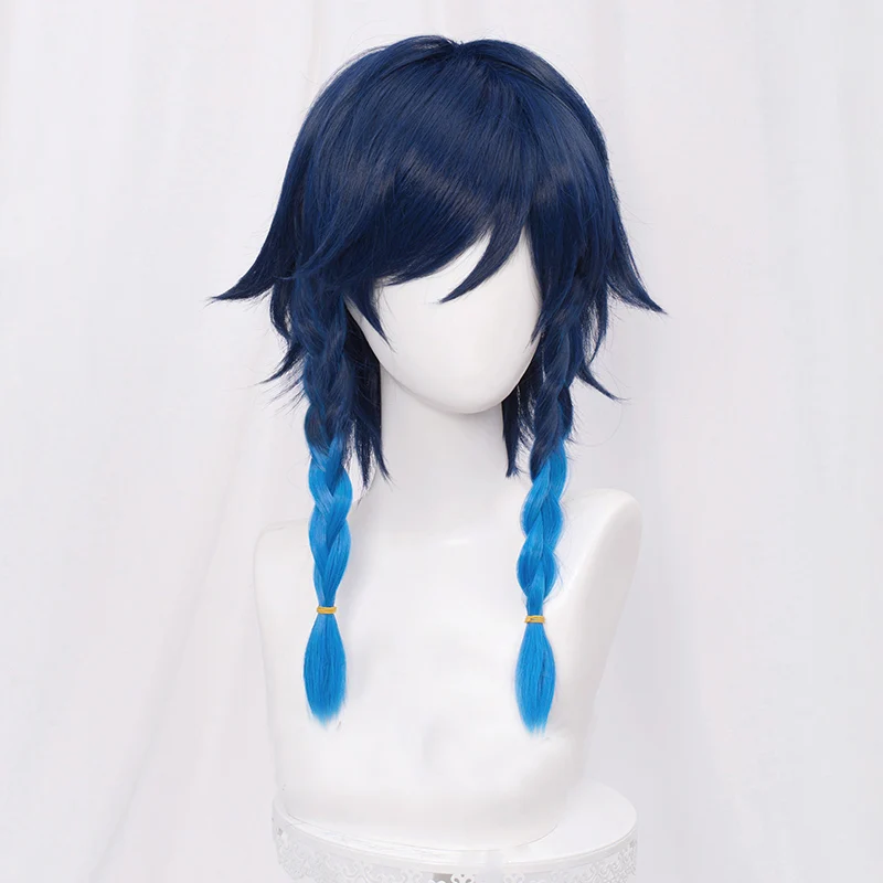 Парики для косплея Game Genshin Impact Venti, синий короткий парик градиента, плетеные парики, термостойкие синтетические волосы + парик, Кепка