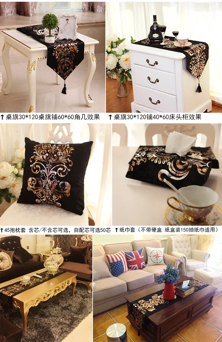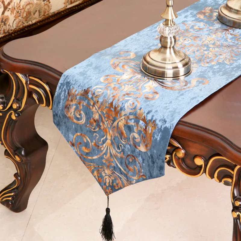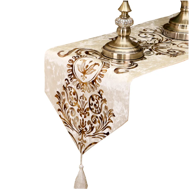 Бархатная бронзовая атласная настольная дорожка в европейском барочном стиле золотой обеденный коврик Свадебный домашний декор роскошный Печатный Настольный флаг